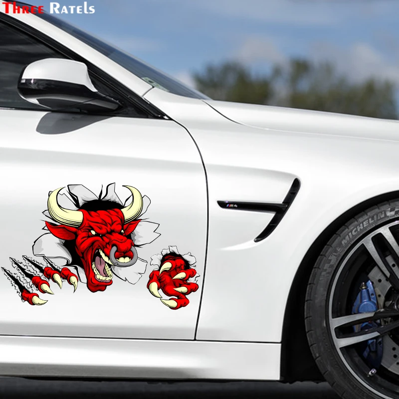 Three Ratels FC898 3D Корова красный бык наклейка на машину виниловые наклейки аксессуары для мотоциклов наклейка