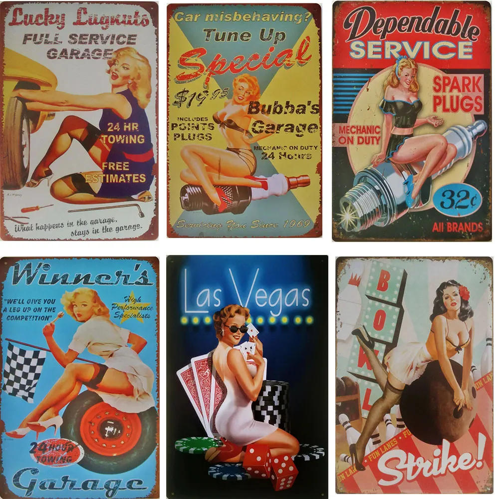 Сексуальная Женская металлическая доска винтажные знаки для девочек ретро гараж настенный плакат для дома гараж человек пещера Бар Паб декоративные таблички