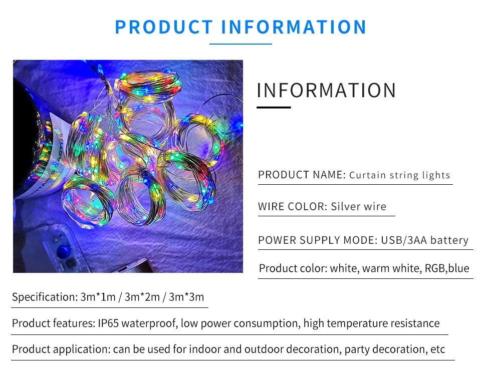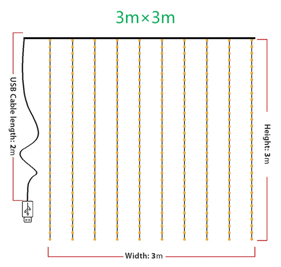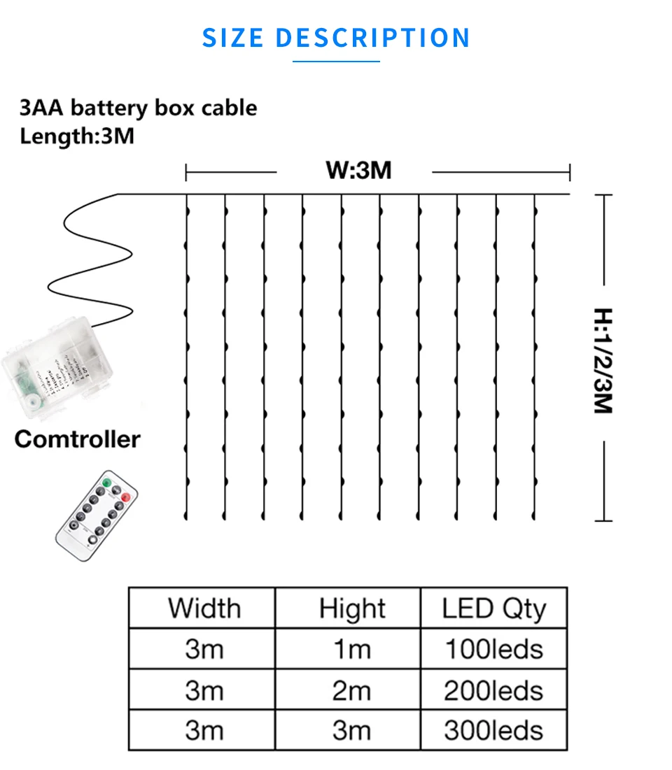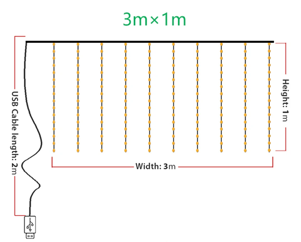 СВЕТОДИОДНАЯ Гирлянда-занавес с дистанционным управлением, 3 м