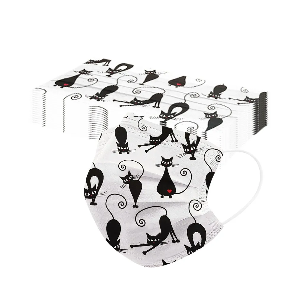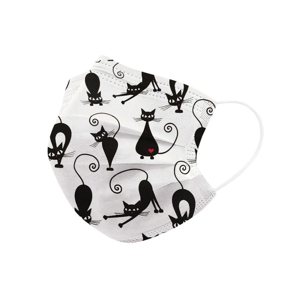 Маска одноразовая унисекс с принтом кошки, 3-слойная Пылезащитная, ...