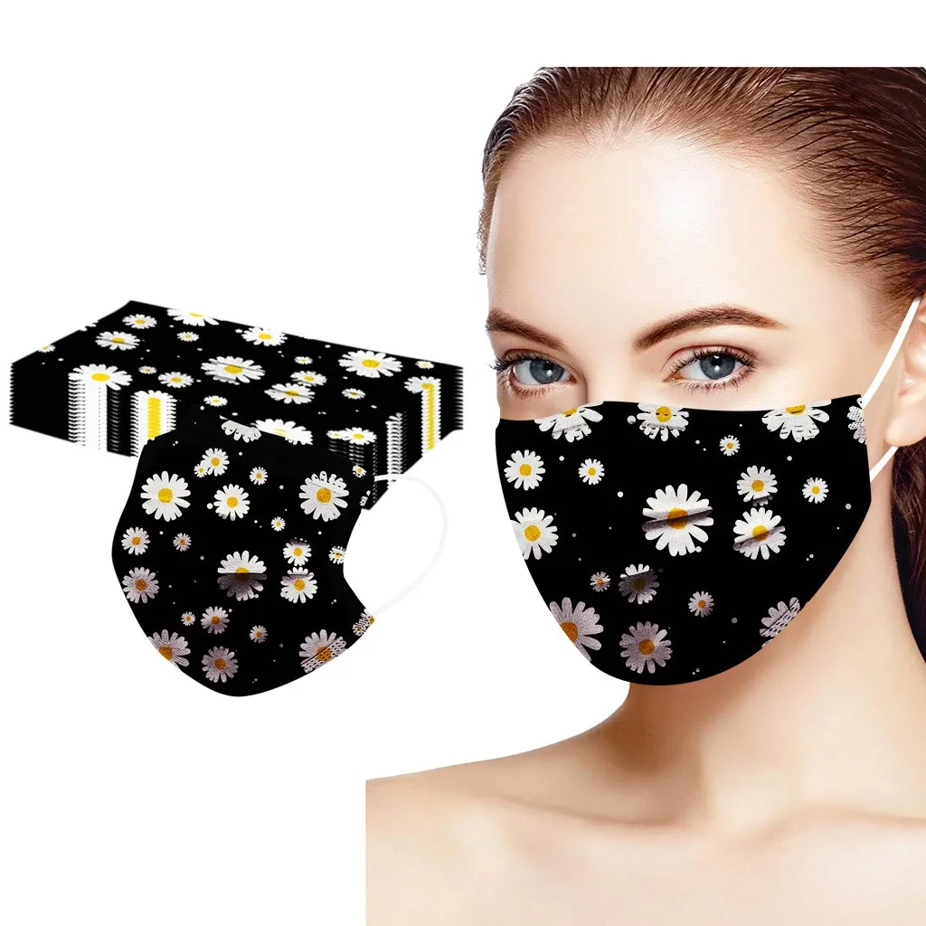 Маски одноразовые летние дышащие в клетку, с цветами и полосками, 2...