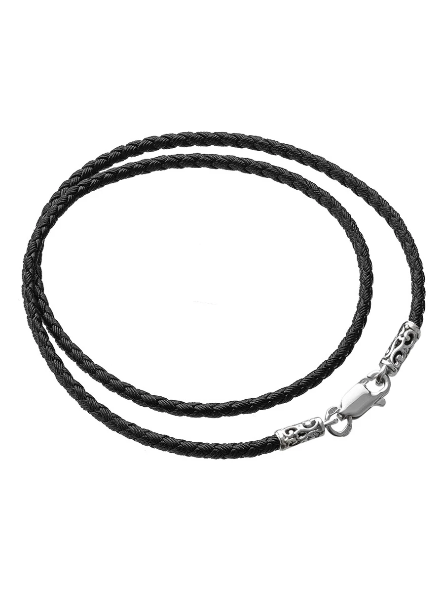Шелковый Шнурок, серебро 925, цвет Черный, толщина 3 мм, RUFINA