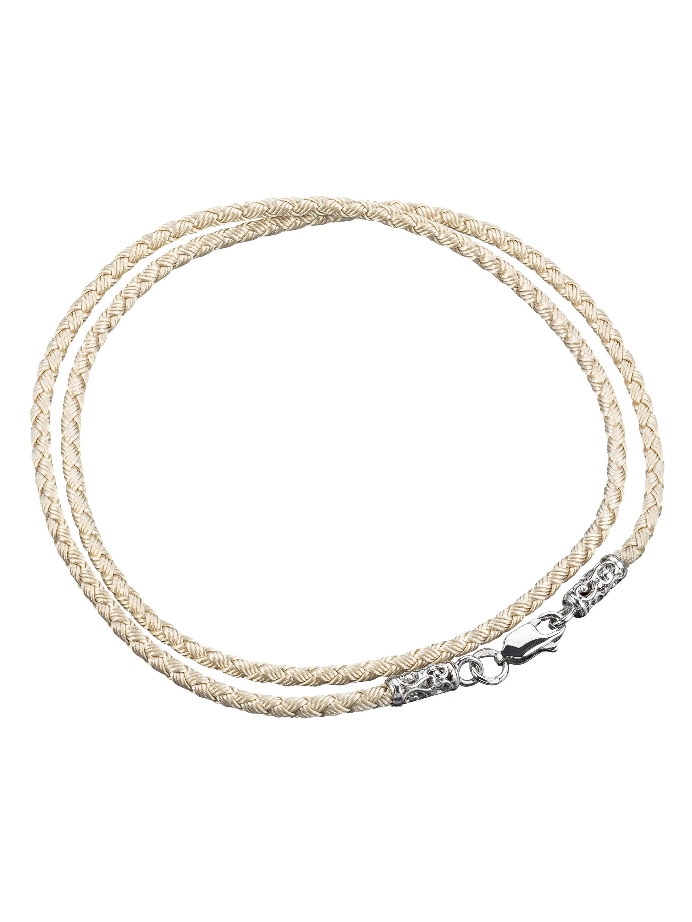 Шнурок Шелковый - Колье, серебро 925, цвет Бежевый , толщина 2,5 мм, RUFINA