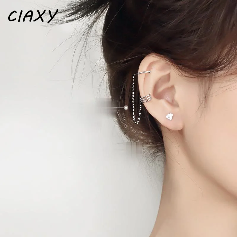 CIAXY 1 шт. 925 штамп ушной Кафф клипса цепочка кисточка клипсы на серьги для женщин корейский Серебряный цвет ювелирные изделия женские серьги