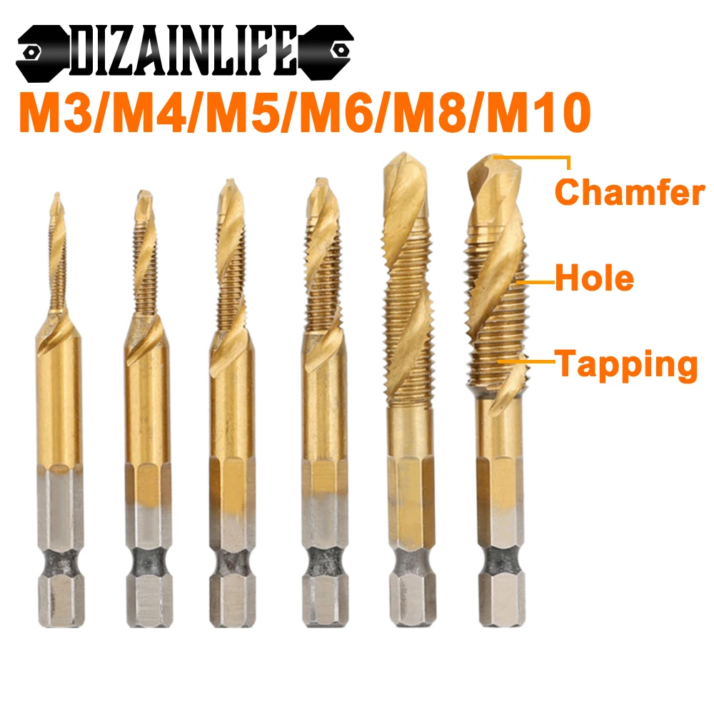 Набор насадок для винт из быстрорежущей стали с шестигранным хвостовиком и титановым покрытием, метрическое сверло под Метчик насадки для фаски