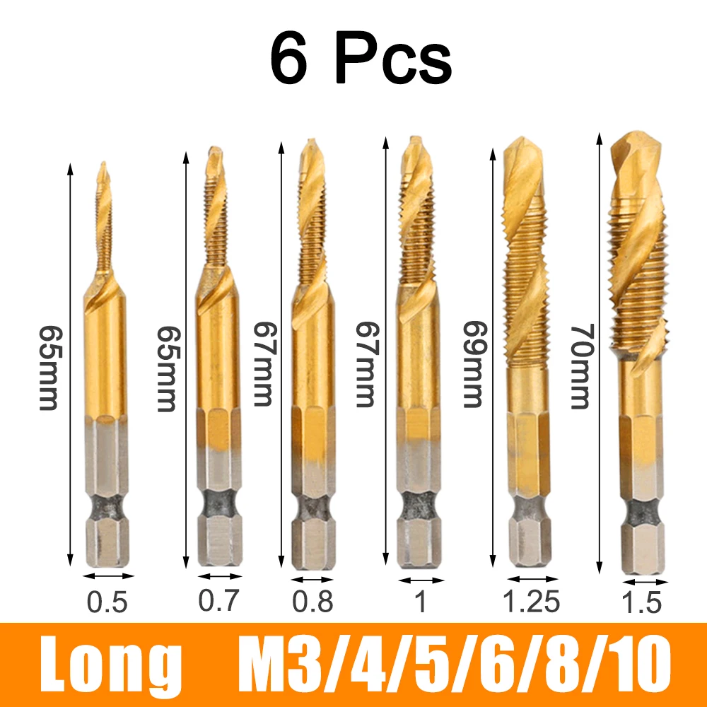 6 шт. шестигранный хвостовик с титановым покрытием винт из быстрорежущей стали резьба метрическое сверло под Метчик биты для винтового станка составной кран короткий или длинный M3-M10 ручной инструмент