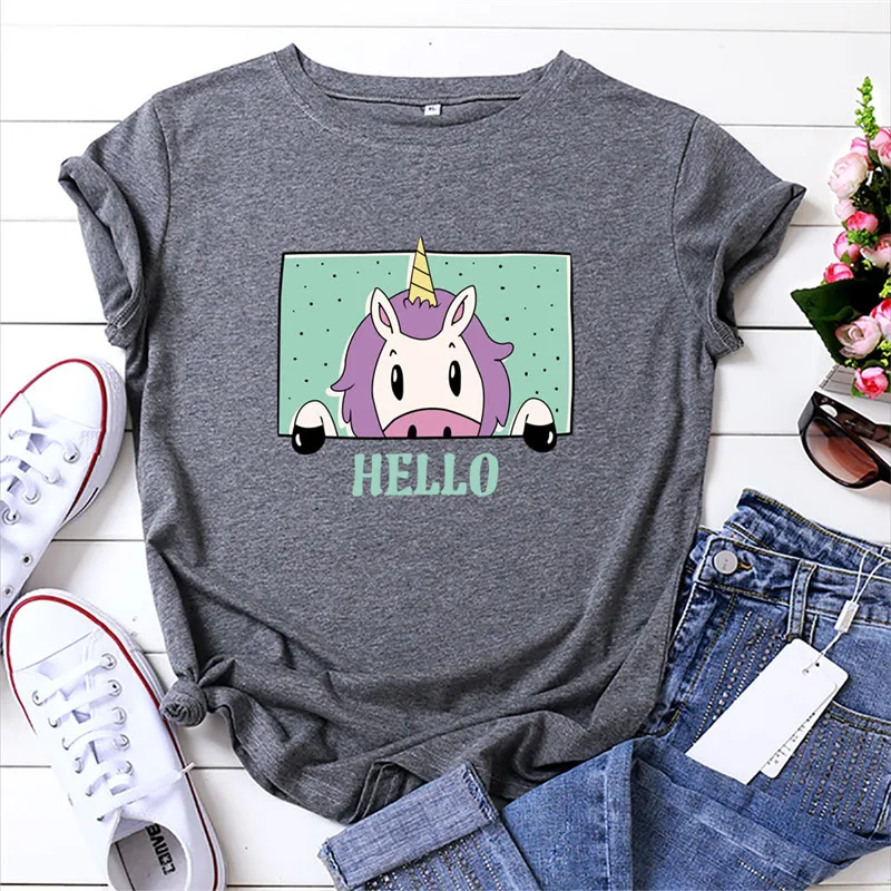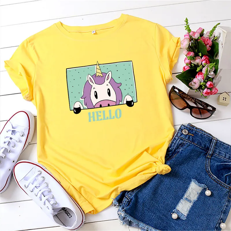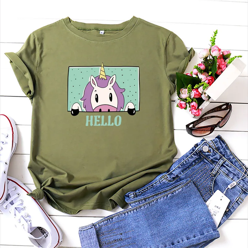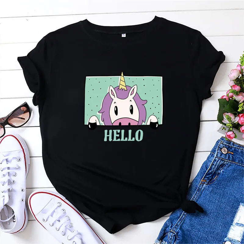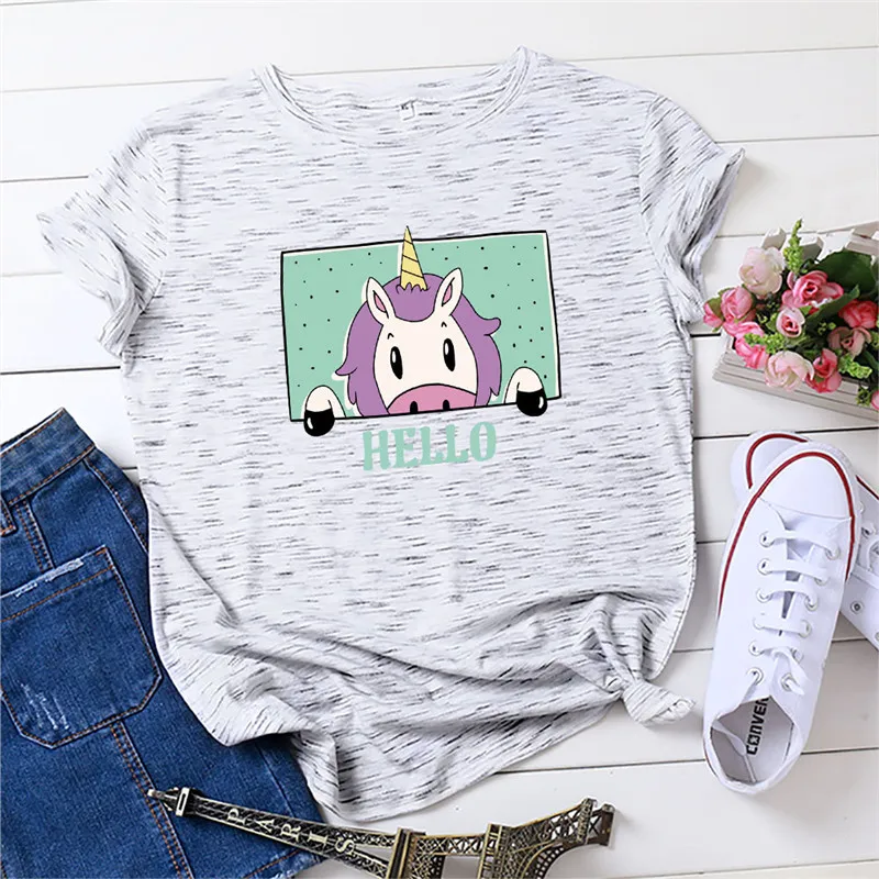 Футболка женская с круглым вырезом и коротким рукавом, 100% хлопок