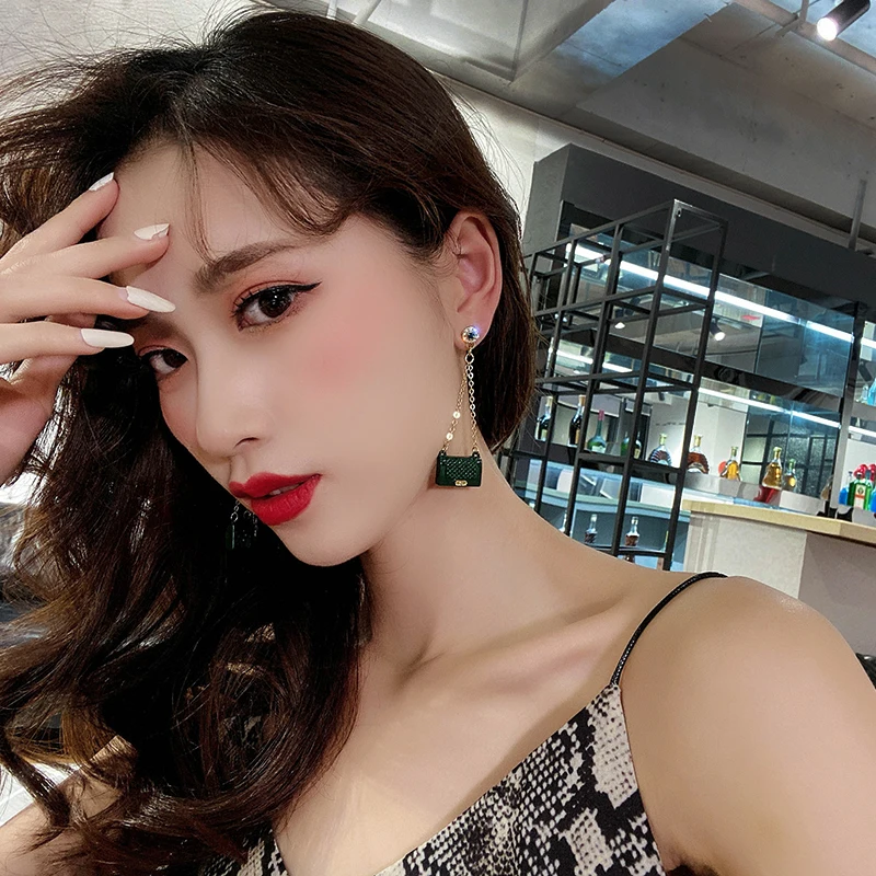 Милые длинные висячие серьги с кисточкой и сумкой, цвет 2021, трендовые Висячие женские серьги, корейские модные ювелирные изделия, вечерние серьги для девочек, подарок