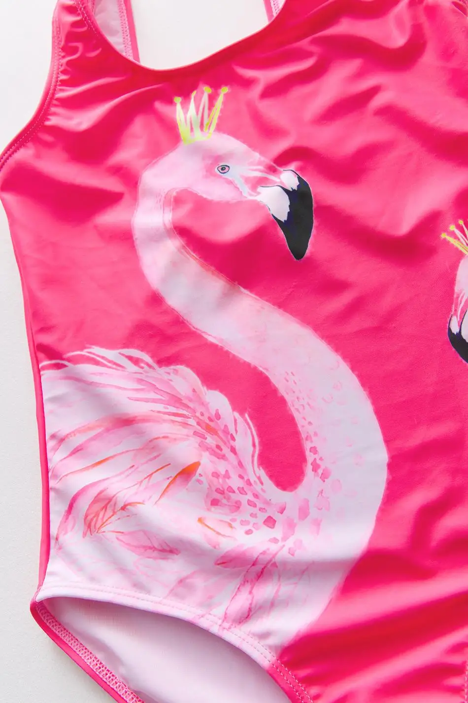 Новинка 2021, слитный купальник с фламинго для девочек, купальник принцессы с розами для девочек 3-10 лет, купальный костюм, пляжная одежда