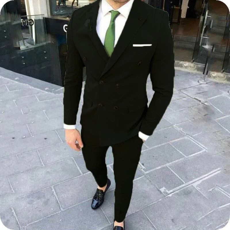 Двойные груди черные костюмы Мужские приталенные наряды одежда для ...