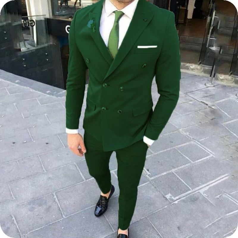 Мужские костюмы 2022, двубортные зеленые костюмы, модные облегающие...