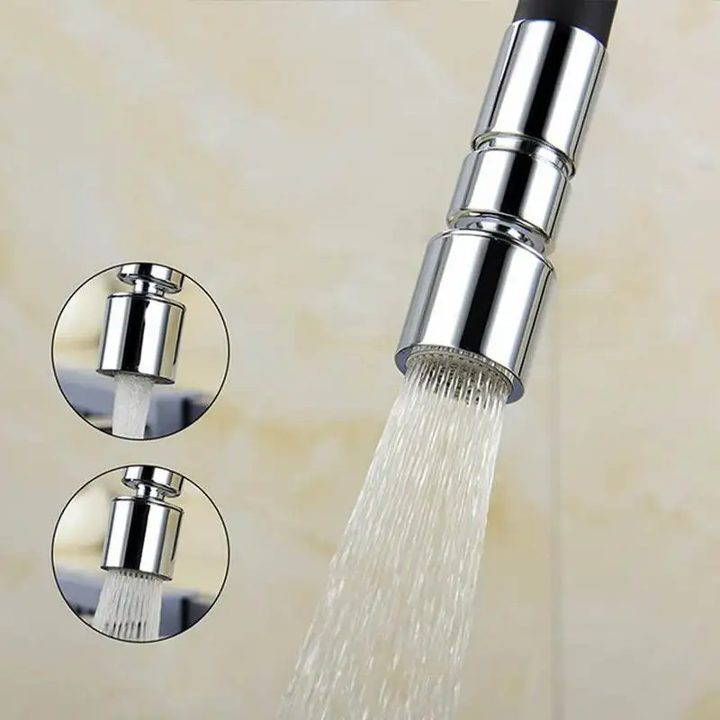 Насадка может вращаться на 360 градусов, что позволяет направлять кран в необходимую вам сторону. Таким образом вы сможете направлять струю воды на любой уголок рабочей поверхности, что облегчит процесс мойки посуды.