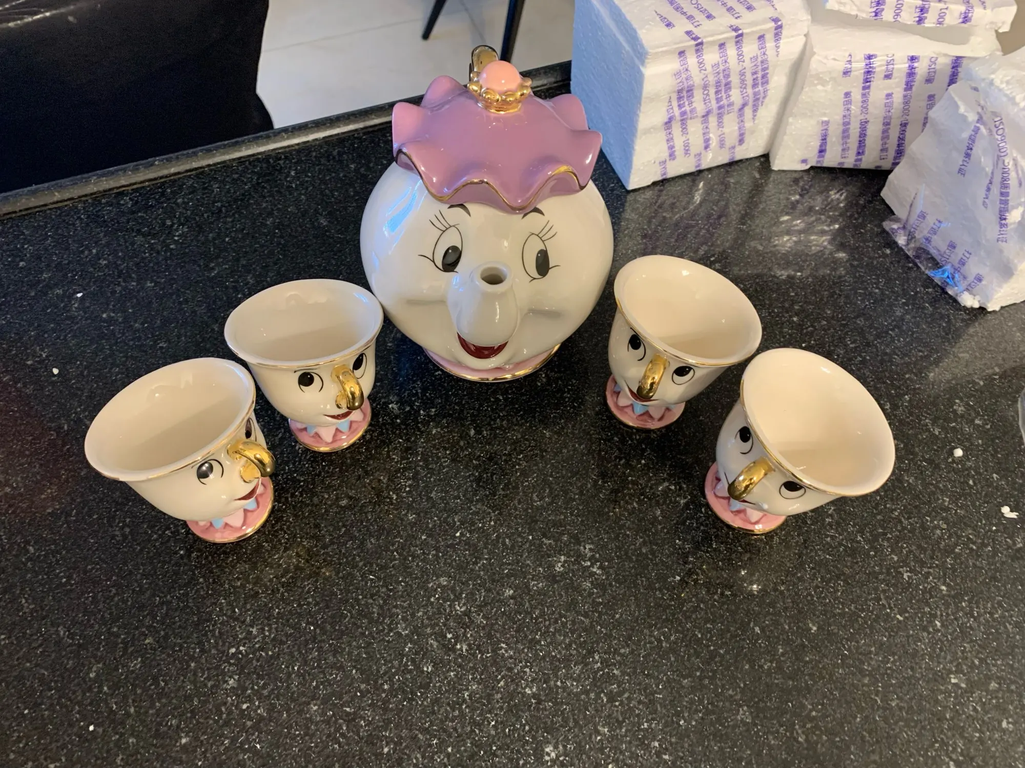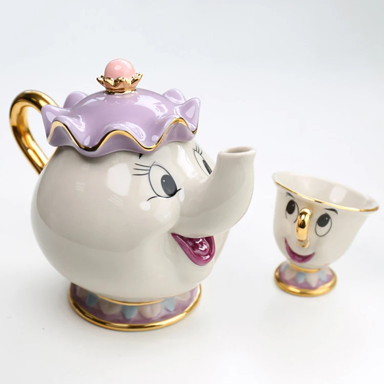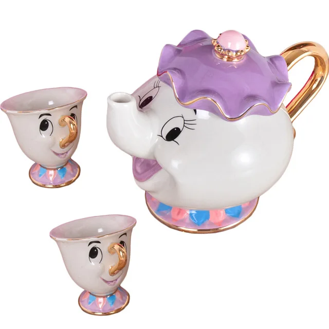 Мультяшный чайный сервиз Красавица и Чудовище, Набор чашек с изображением миссис-Поттс, чашка с чипом, чашка для сахара 1 горшок + 5 чашек, детский подарок