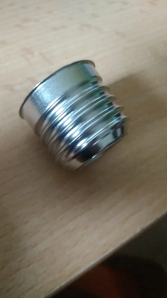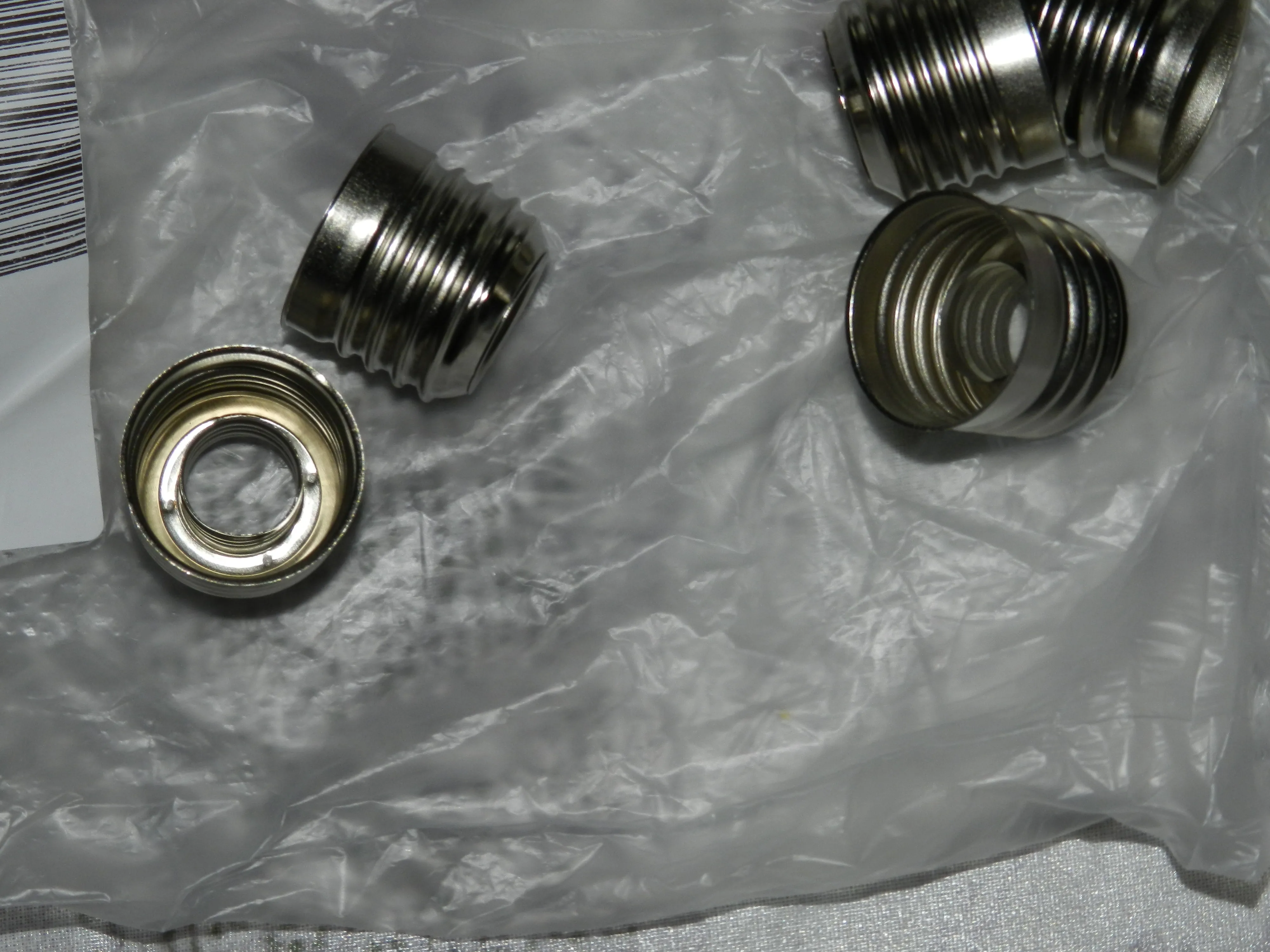 Качество оказалось лучше, чем на фото продавца))) Меня смущало места сварок на фото, на деле оказалось, что таких пропалин нет. Монета 10 RUR на моём фото для сравнения размеров. Идеально подходит в патрон Е27 и к лампочке Е14. При перекосе резьб цоколя лампочки или патрона, переходник заодно позволяет немного устранить такой перекос путём простого несильного отгибания в нужную сторону.