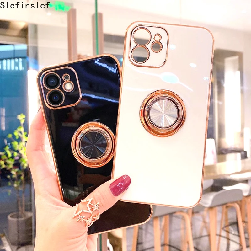Роскошный мягкий силиконовый чехол с покрытием для iPhone 12 11 Pro Max Mini XS XR X 7 8 Plus SE 2020, чехол с кольцом-держателем для телефона для девушек и женщин