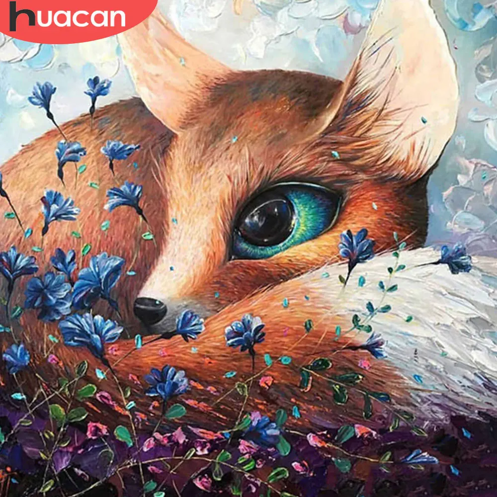 Алмазная живопись 5d HUACAN сделай сам, настенная живопись с лисой, полноразмернаякруглая Алмазная вышивка с животными, подарок ручной работы