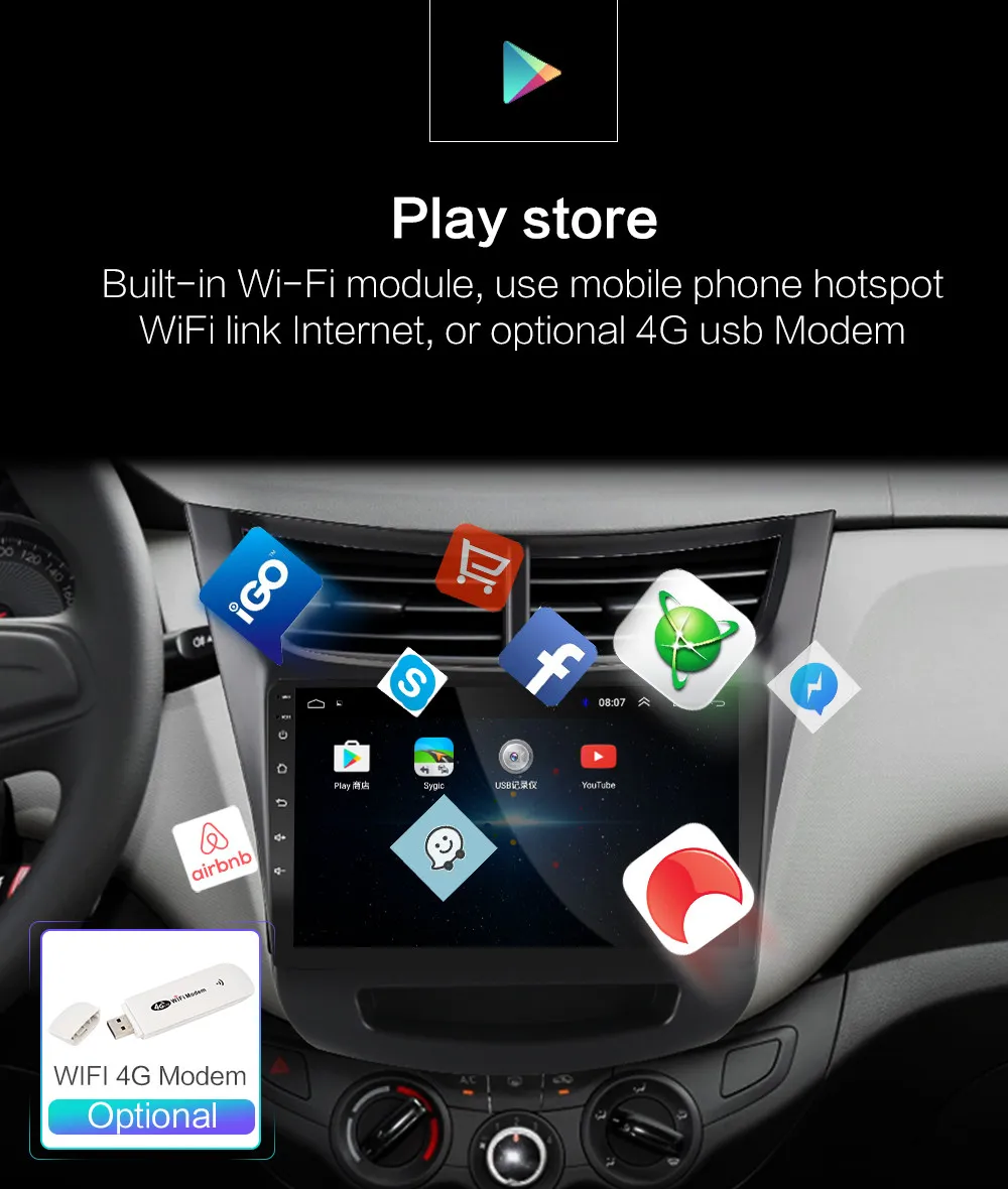 Для Chevrolet Sail 2015 2016 2017 2018 2019 1, 4-х ядерный конфигурация включает в себя (Оперативная память + Встроенная память): 1 Гб + 16 ГБ/2 ГБ + 16 ГБ/2G + 32G / 4G-SIM-3560-2G + 32G [дополнительно]; 2, 8-ядерный конфигурация включает в себя (Оперативная память + Встроенная память): 7260L-2G + 32G / 7260L-4G + 64G / 4G-SIM-5760-2G + 32G / 4G-SIM-5760-4G + 64G / 4G-SIM-TS10-4G + 64G/4g-sim-ts6g на выбор + 128 3, 4-х ядерный содержит: версия: Android 8,1; Четырехъядерный процессор MTK8227 / Cortex-A7 Поддержка автомобиля logo5; Sfactory пароль: 8888 Разрешение: HD 2.5D,1024*600; Не поддерживает функцию AM, функцию RDS; Обычная посылка WiFi поддерживает функцию видеовыхода; Версия 3560-4G-SIM-WiFi: версия: Android 6,0; Поддерживает DSP; Не поддерживает функцию видеовыхода; 4, 8-Core содержат: версия: Android 9,0 или Android 10; Восемь ядер: CPU Quad core и GPU Quad core соответственно; Поддержка автомобиля logo5;Sfactory пароль: 8888; Разрешение: HD 2.5D,1024*600; Версия 7260L-WIFI: поддерживает DSP, функции; Не поддерживает видеовыход; 4G-SIM-5760-WIFI и 4G-SIM-TS10-WIFI версия: поддерживает функции DSP, Carplay, сплит-экрана; Не поддерживает видеовыход; 5. Операционная система Android может установить приложение Google Play store Skype Facebook youTube Twitter и т. Д.; 6. Поддержка: радиостанция, Bluetooth Вызов, Bluetooth музыка, управление рулевым колесом, встроенный WiFi, MP3, видео музыка (MPG, AVI), навигация, видеовыход, зеркальная связь, USB 4G LTE WIFI ключ и другие функции; Поддержка OBD (опционально) Поддержка DAB + (опционально)