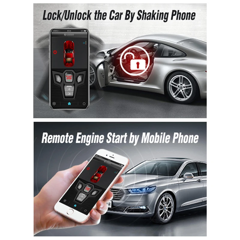 Начните с телефон смарт-система входа без ключа автомобиля удаленным стартером мотора Центральный замок 2-полосная сигнализация с автозапуском одна кнопка стоп