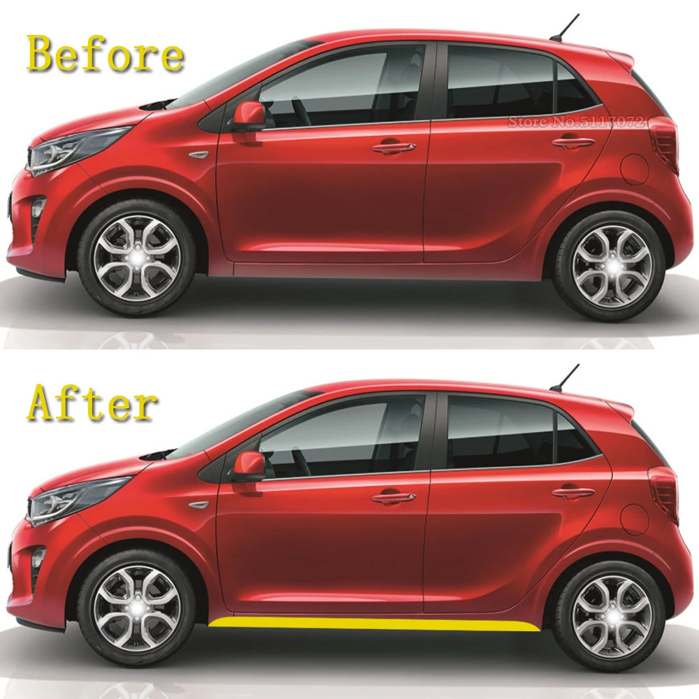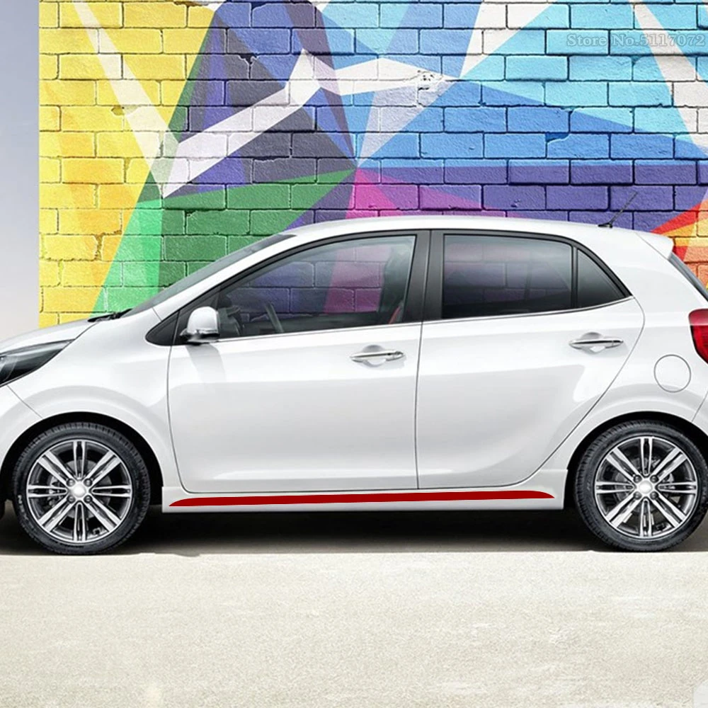 Автомобильные наклейки для KIA Picanto Morning из углеродного волокна, спортивные двери, боковая юбка, полосы, Стайлинг, декор тела, автомобильные аксессуары, виниловые наклейки
