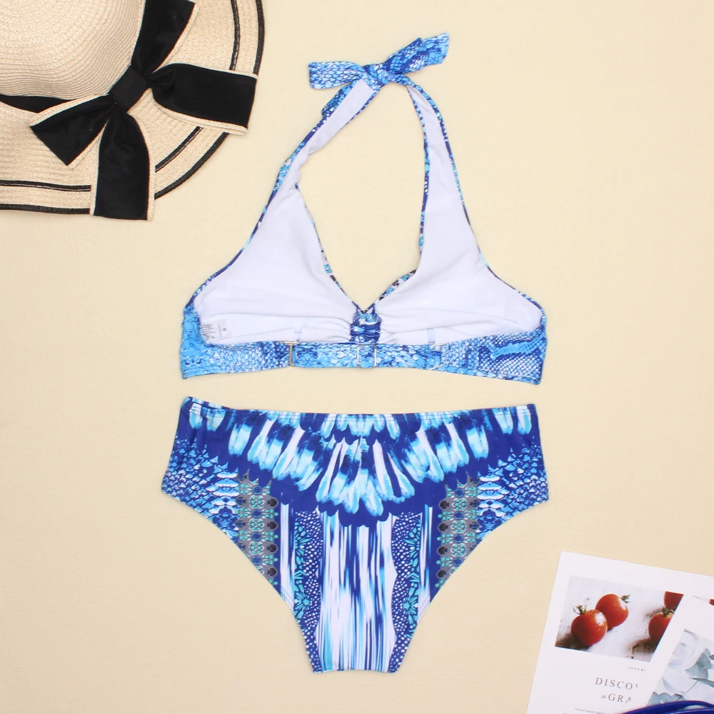 Бикини женское из двух частей с принтом, пикантный купальный костюм...