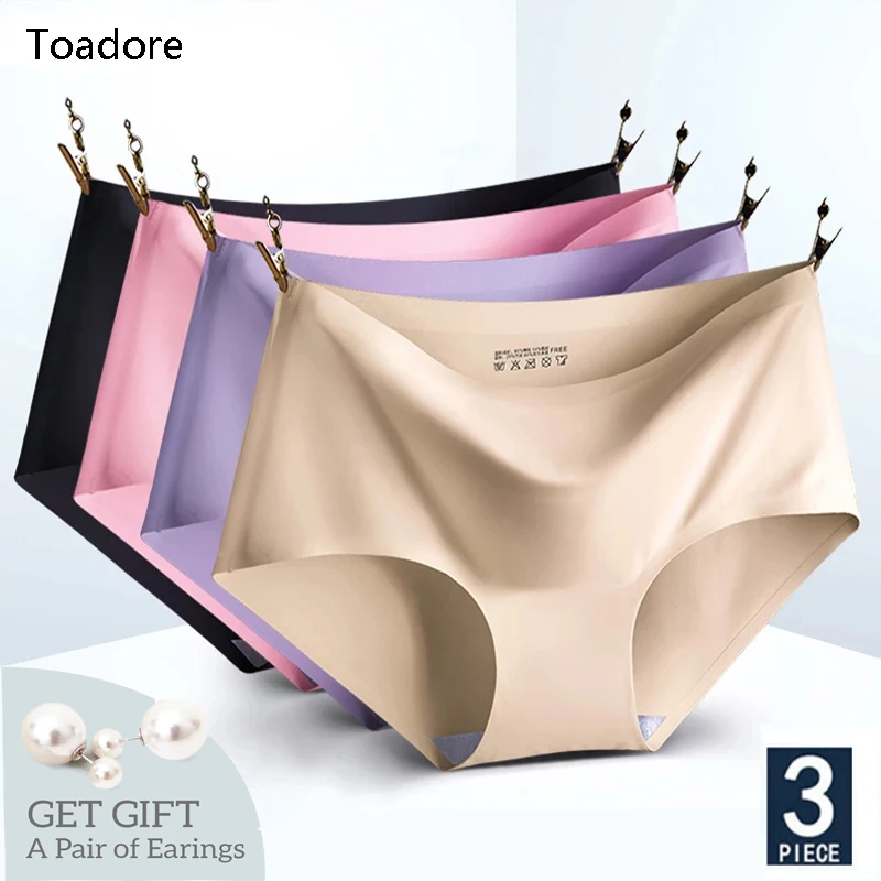 Трусы женские бесшовные, 3 шт.лот, шелковые, со средней посадкой, большие размеры, XXL
