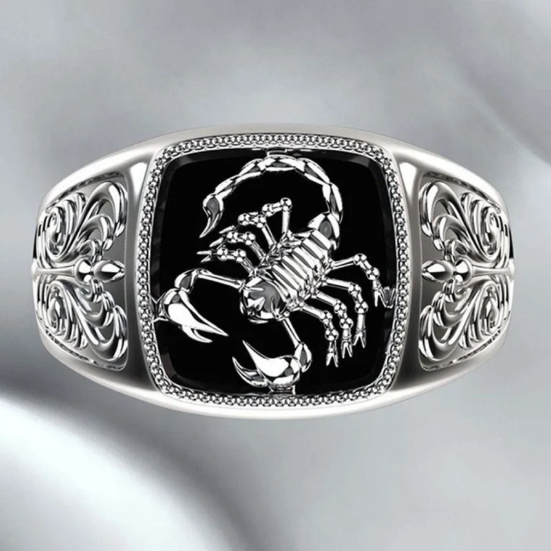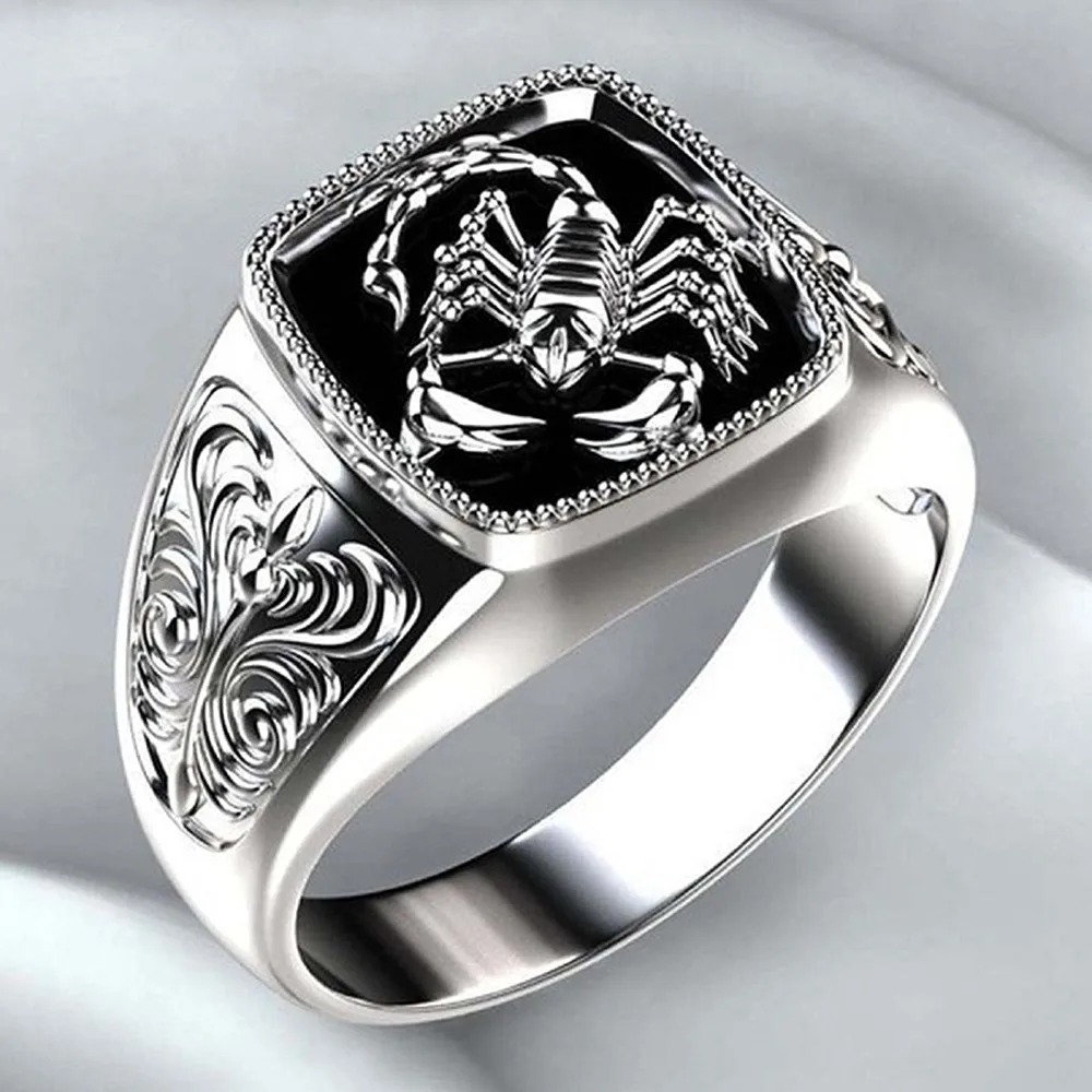 Модные крутые эмалевые кольца в виде скорпиона с черной резьбой для мужчин, белые, золотые, серебряные мужские аксессуары, ювелирные изделия, подарочные ремешки для пальцев
