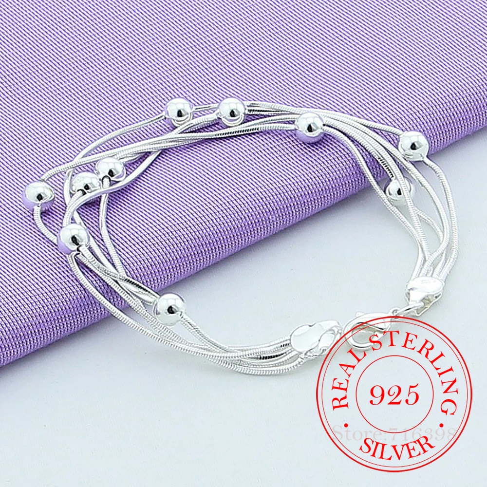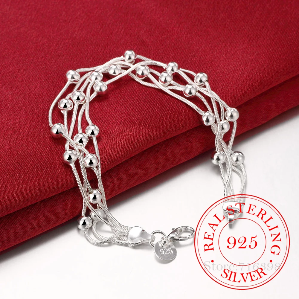925 стерлингового серебра пять цепь змейки браслет гладкий серебряный браслет из бисера Мода для женщин, ювелирное изделие для помолвки, свадьбы