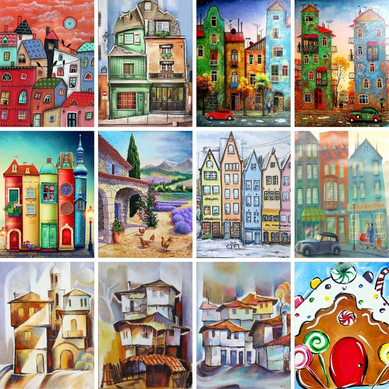 RUOPOTY Красочный дом пейзаж живопись по номерам ручной работы уник...