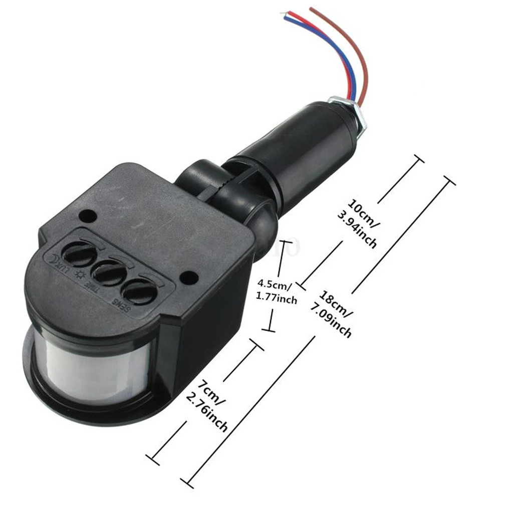 Напряжение: 12 В постоянного тока Материал: АБС Рабочее вращение: 140 ° Стандарт: LVD, EMC, CE, RoHS Класс IP: применение в помещении IP44 Настройка Люкс: 2-люкс, регулировка svr Размер: 50*59*158 мм (прибл.) Время индукционного освещения: 5s ~ 6 мин. регулируемое время Расстояние обнаружения: около 12 м, высота установки 1,5-2,5 м Подключение: Синий цвет: нулевая линия (нейтральный) Коричневый цвет: провод под напряжением Красный: заземляющий провод Выход: лампа накаливания максимум 1000 Вт, флуоресцентная лампа 100 Вт, вытяжной вентилятор 100 Вт, двигатель 100 Вт, электрический звонок 100 ВтПримечание: