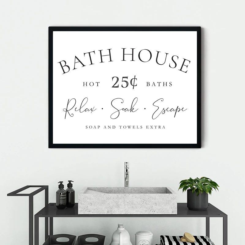 Ванна знак на дом холст картины расслабиться замочить побег Цитата Художественная печать Черный и белый Минималистский Плакат Ванная комната настенное изображение Декор