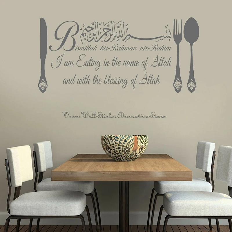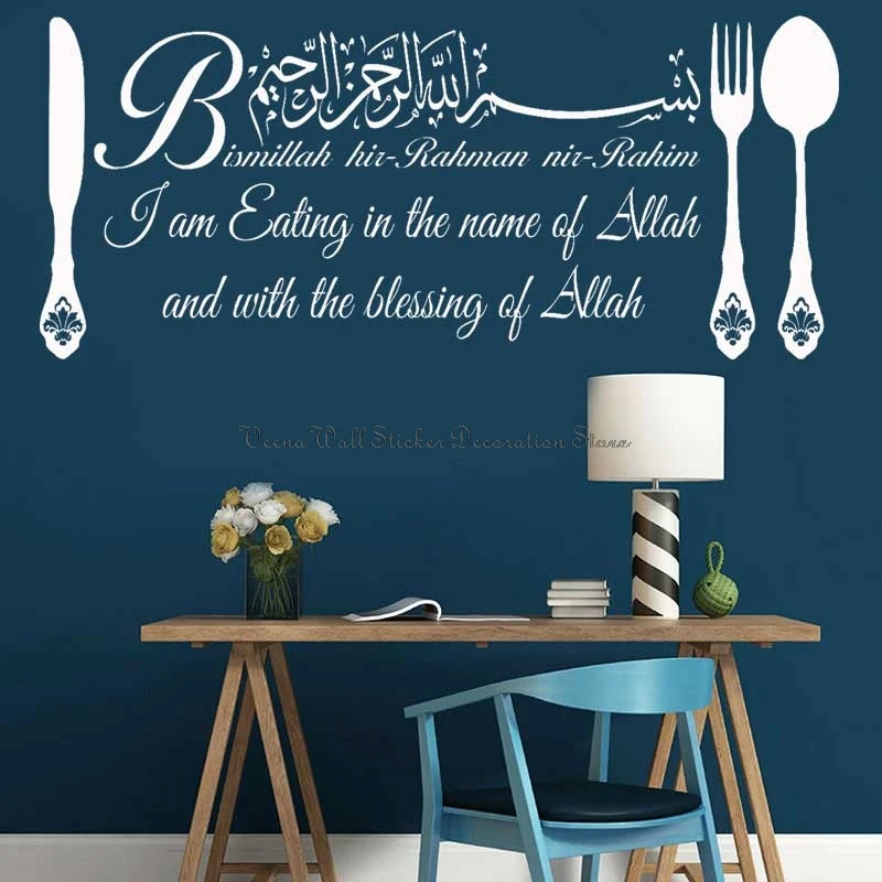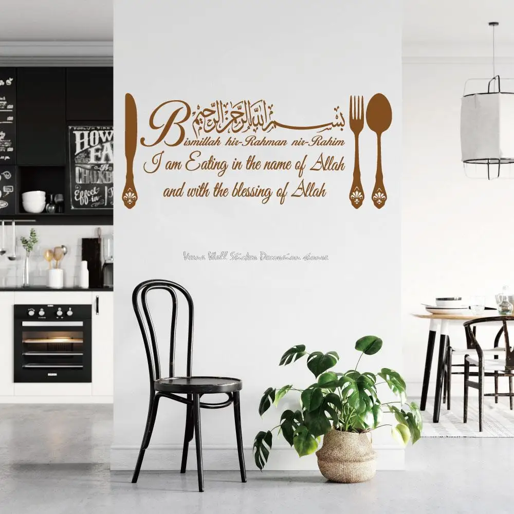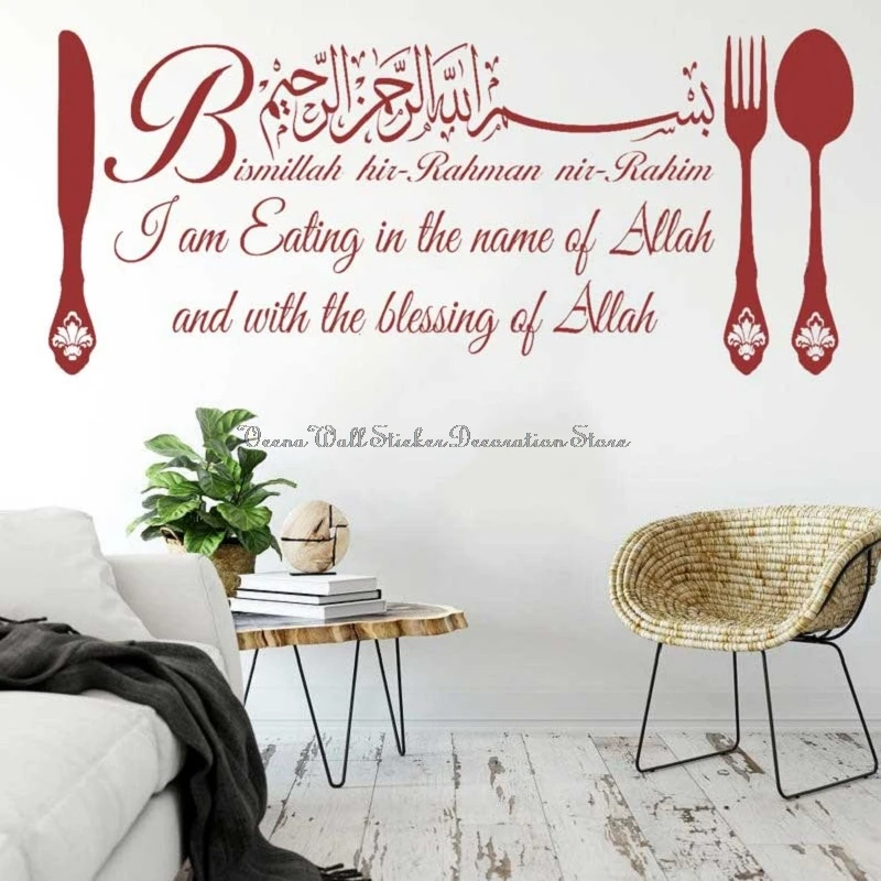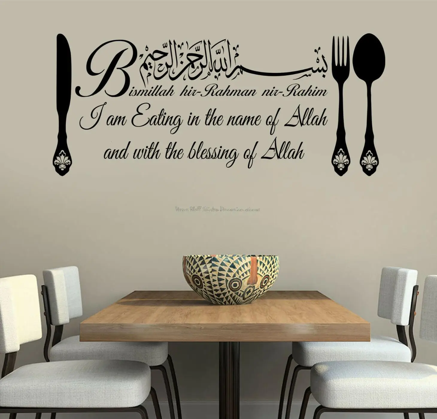 Благословение Аллаха, Виниловая наклейка на стену, Арабский мусульманский дом, кухня, гостиная, арт-деко, наклейка, исламский Декор для столовой, подарок 19