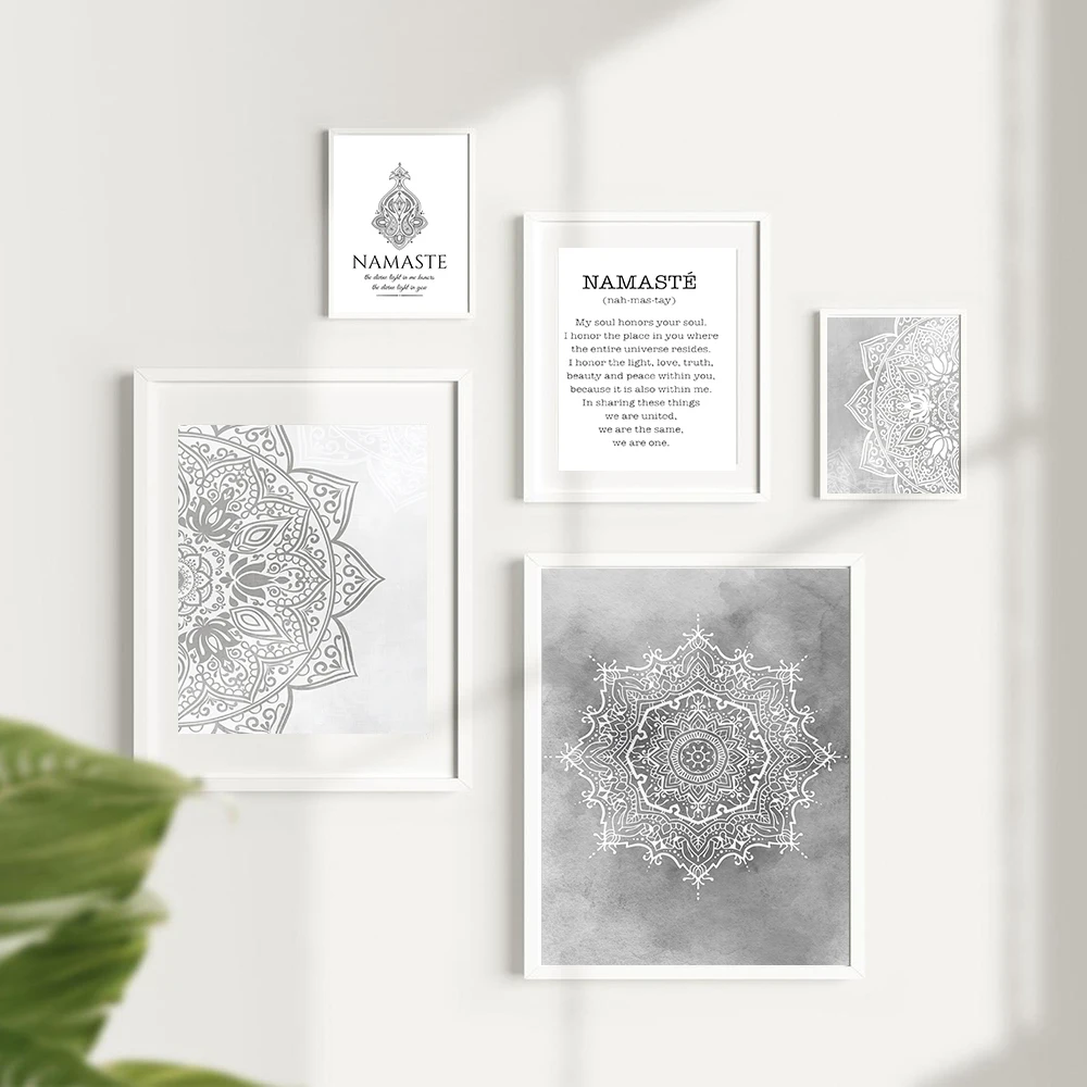 Белый серый Мандала Абстрактная живопись на холсте, плакат йога искусство стены Намасте с принтом с цитатой декоративная картина Современные Декор в гостиную