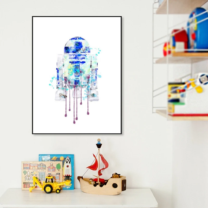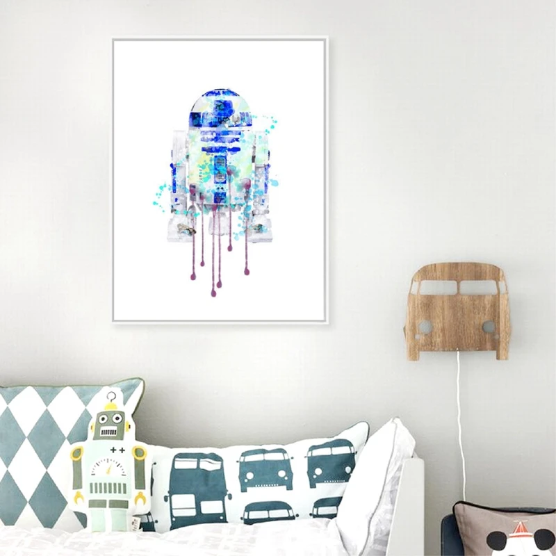 Постер на стену с акварельным роботом R2D2, Картина на холсте из классического фильма Scifi, Настенный декор для комнаты мальчиков