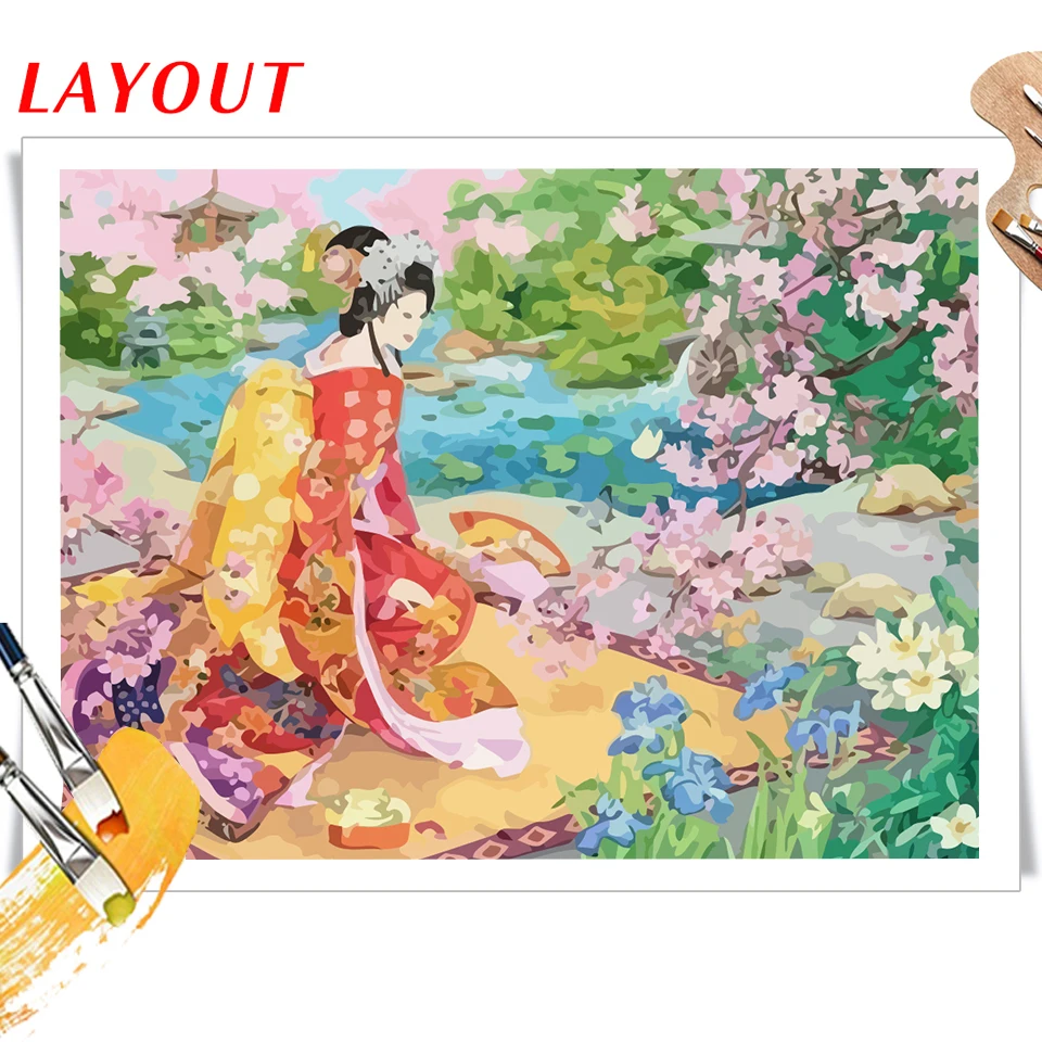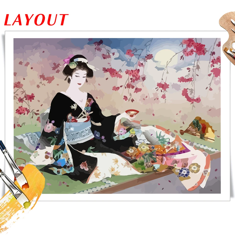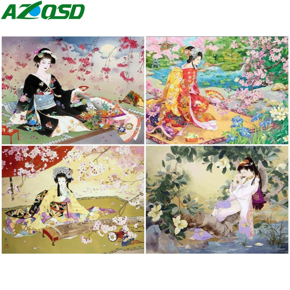 Картина AZQSD по номерам, Японская женщина, рисунок на холсте, рамка сделай сам, Раскрашивание по номерам, наборы фигурок, современные настенные художественные подарки