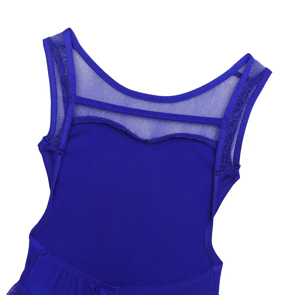 Детей и подростков фатиновое платье без рукавов с открытой спиной, балетное платье-пачка для танцев, костюм акробата, разрешенная Акция балетки высокого с асимметричным низом для девочек и платье, гимнастический купальник