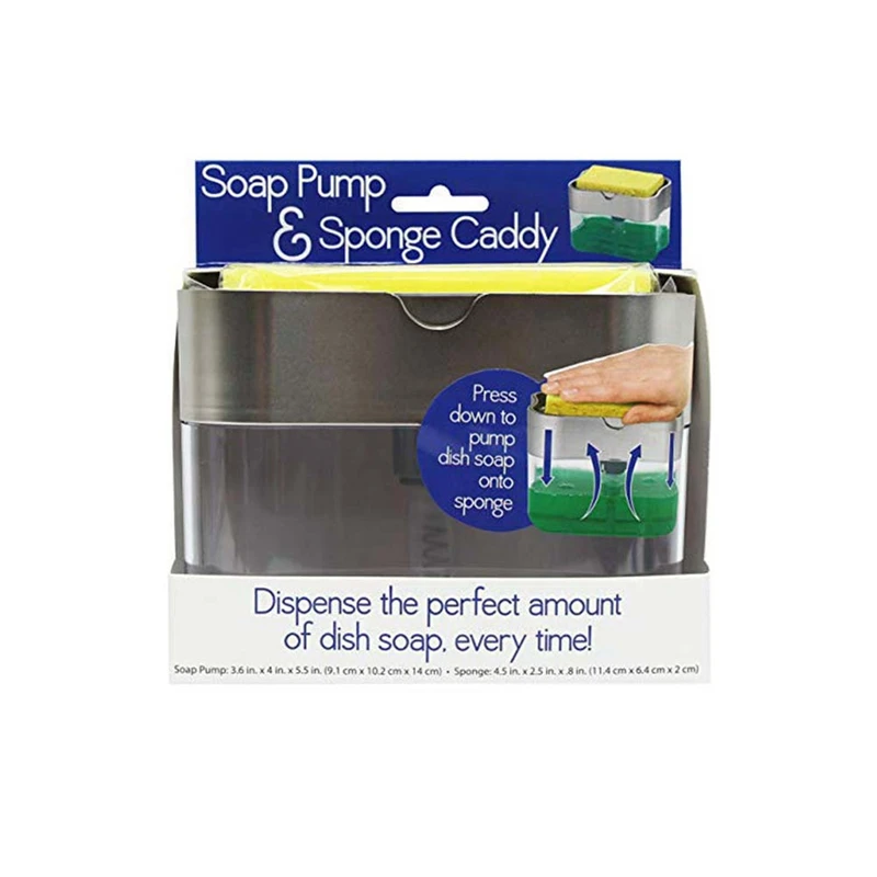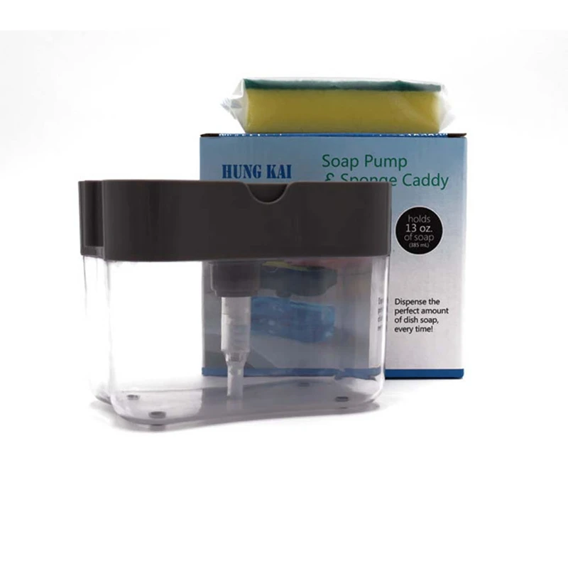 Дозатор для мыла, насос для мыла, губка Caddy, новый креативный кухонный дозатор для жидкого мыла 2 в 1 с ручным прессом и губкой для мытья