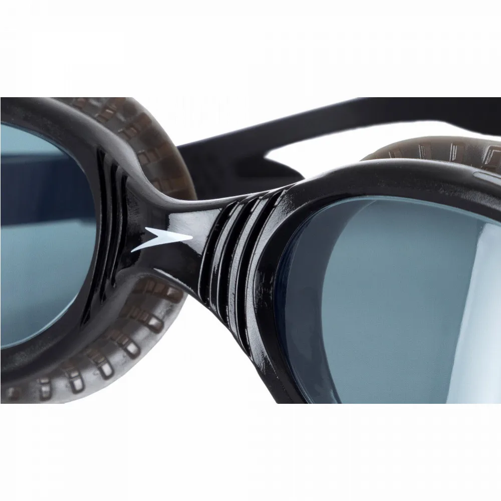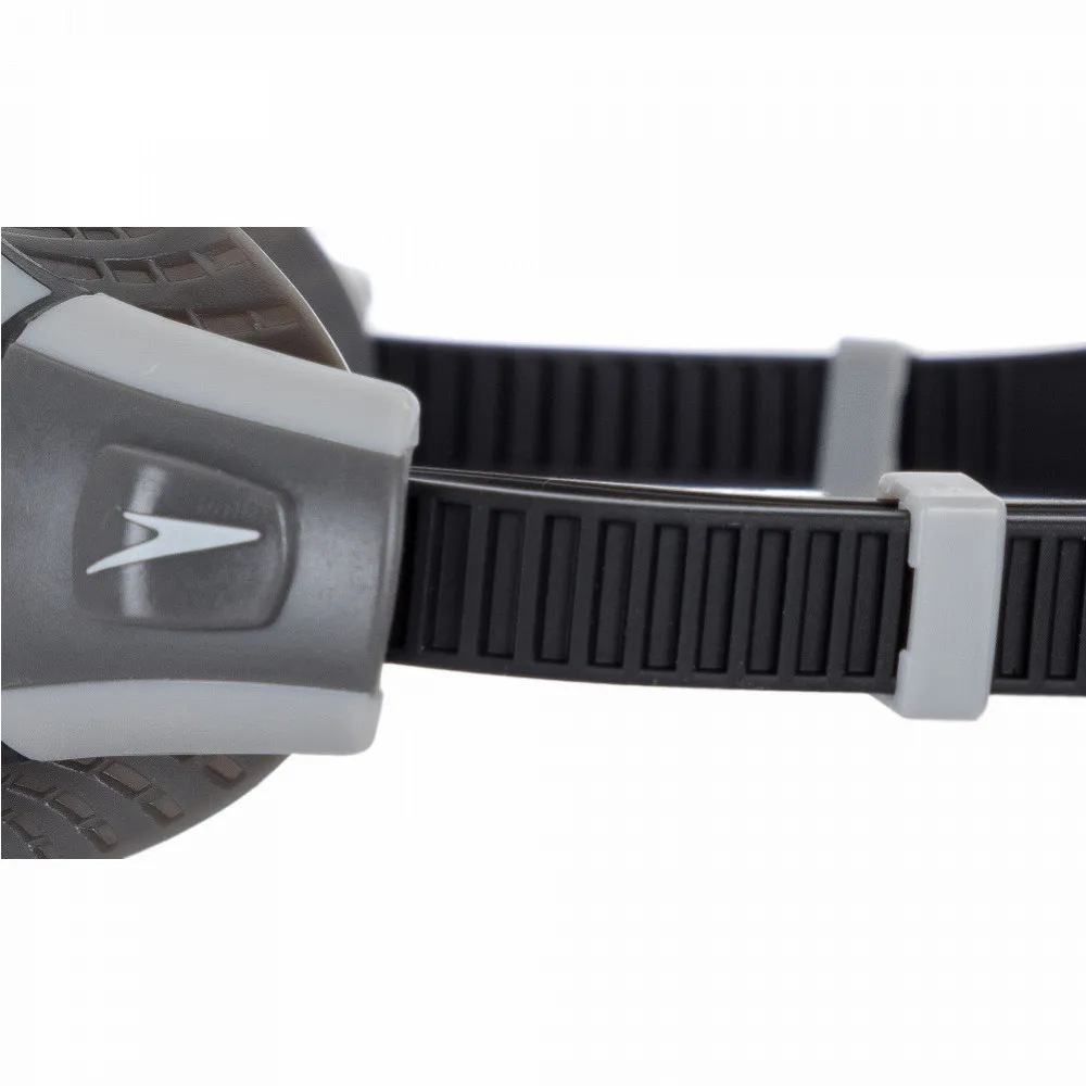 Очки для плавания. Конструкция на базе технологии Biofuse обеспечивает комфорт. Мягкий и широкий уплотнитель гарантирует полное прилегание и уменьшает следы вокруг глаз. Покрытие AntiFog предотвращает запотевание линз. Детали: дымчатые линзы, регулируемый силиконовый ремешок.