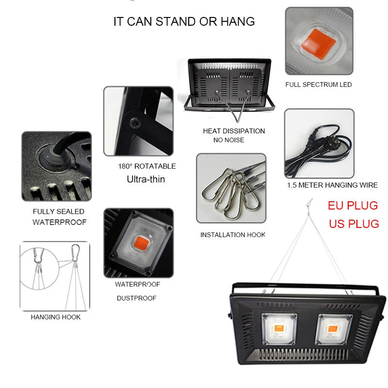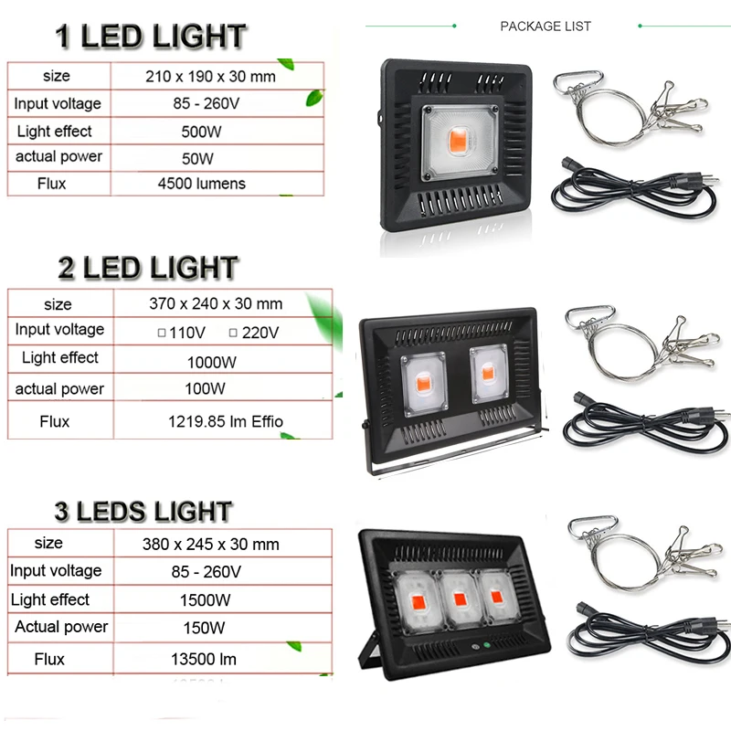 Фитолампа светодиодная полного спектра, 150 Вт, для выращивания растений в помещении