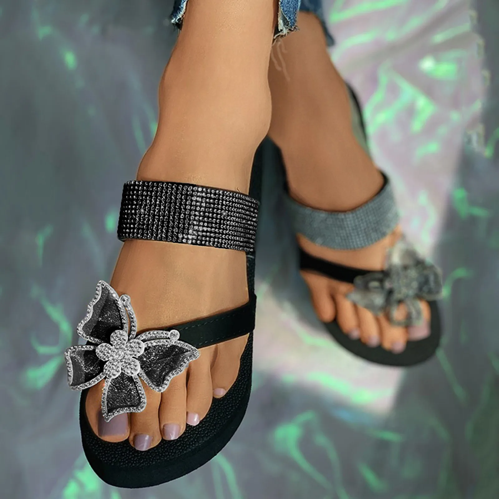 Женские шлепанцы, летние, модные, богемные, со стразами, на плоской подошве, повседневные, дышащие, пляжная обувь, шлепанцы на танкетке D9 #