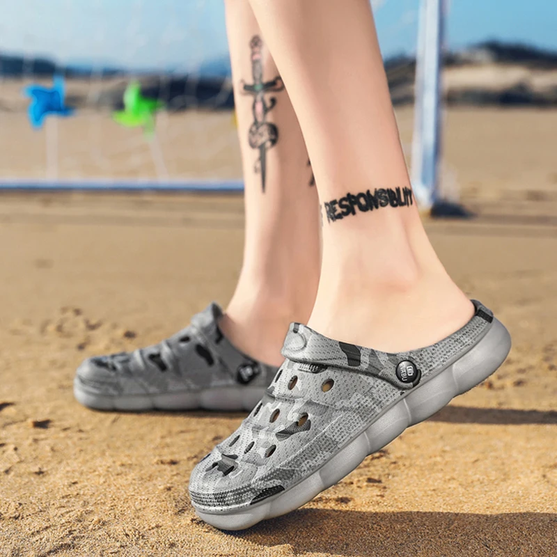 Мужские Пляжные тапки, дышащие Нескользящие мюли, повседневные сандалии для сада, пляжа, летняя обувь, 2021
