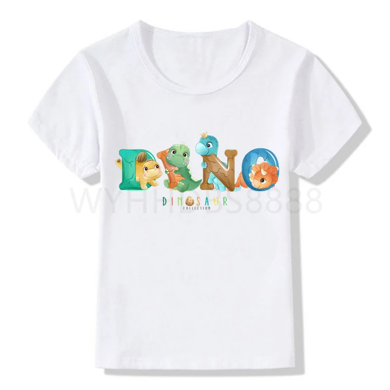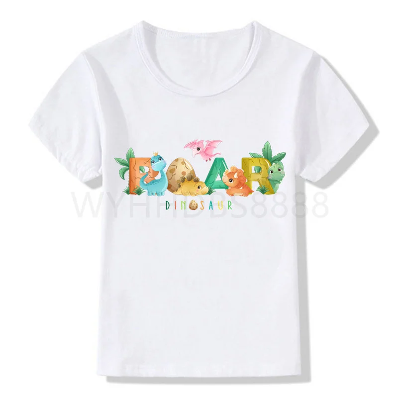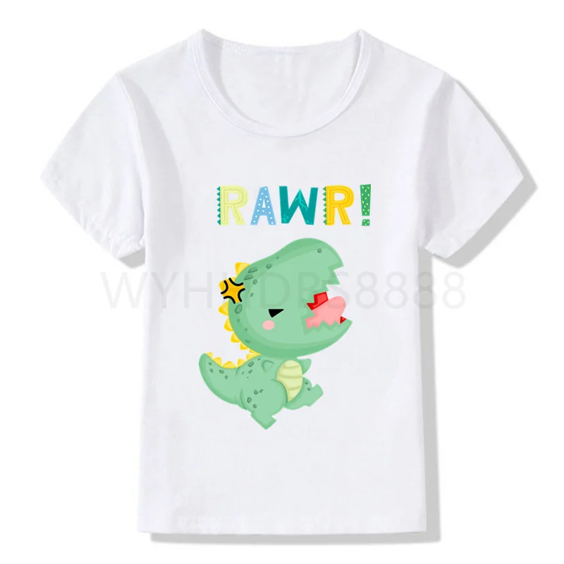 Футболка для мальчиков и девочек с мультяшным принтом динозавра, Детская Милая одежда для подарка на день рождения с цифрами, Детская футболка с мультяшным динозавром 2021