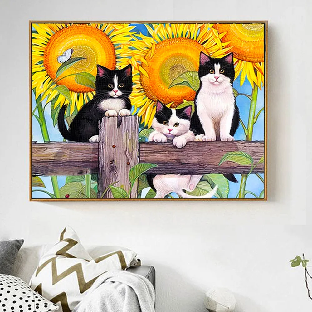 Evershine 5D Алмазная вышивка кошки Новое поступление вышивка крестом полная площадь Алмазная мозаика животные подсолнух декор для дома