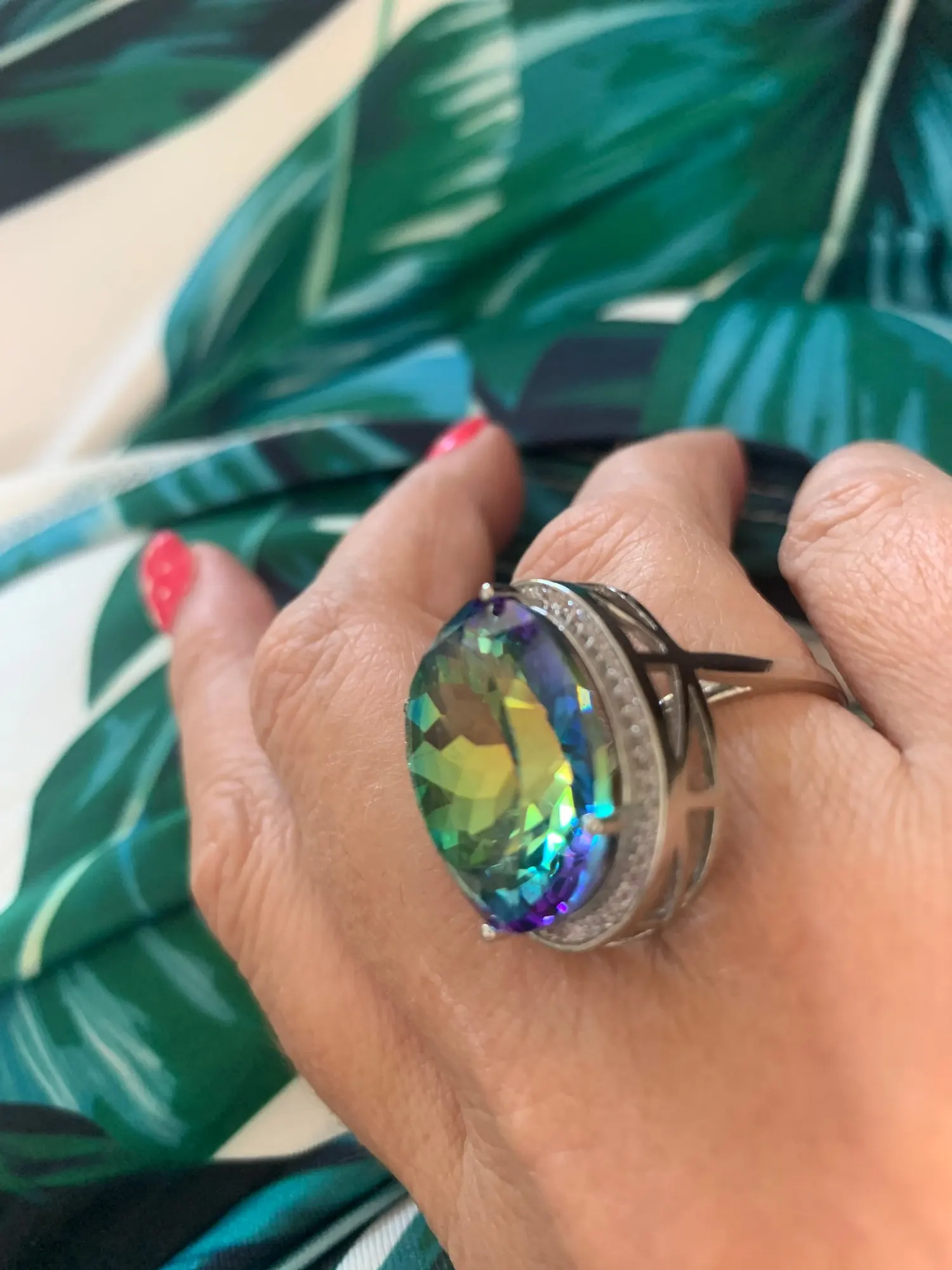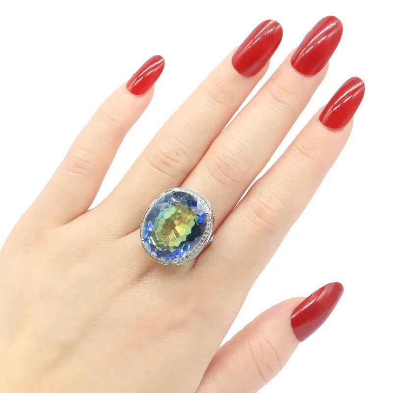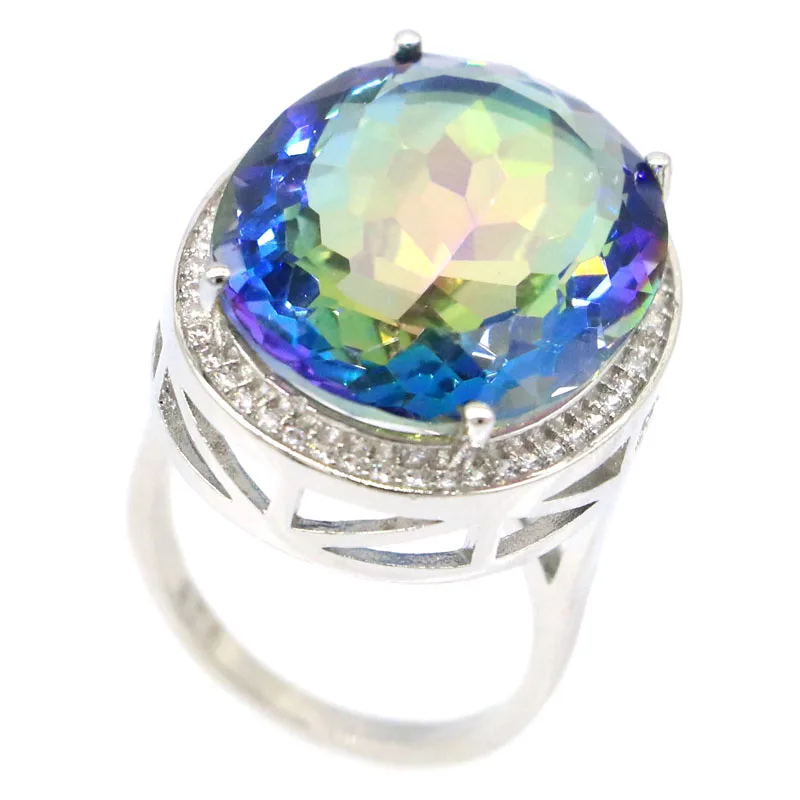 25x21 мм, Лидер продаж, 22x18 мм, огненный мистик, Радужный топаз, циркон, Женские Ювелирные изделия, SheCrown, 925 пробы, серебряные кольца