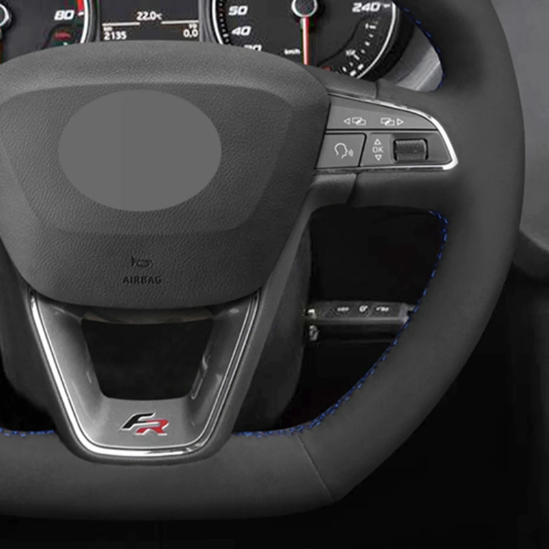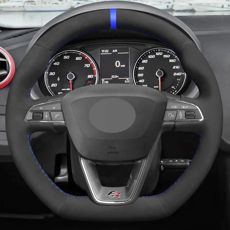 Черная замша Синий Маркер чехол рулевого колеса автомобиля для Seat Leon Cupra R 2013-2019 Ibiza Cupra 2016-2019 Ateca FR 2016-2019