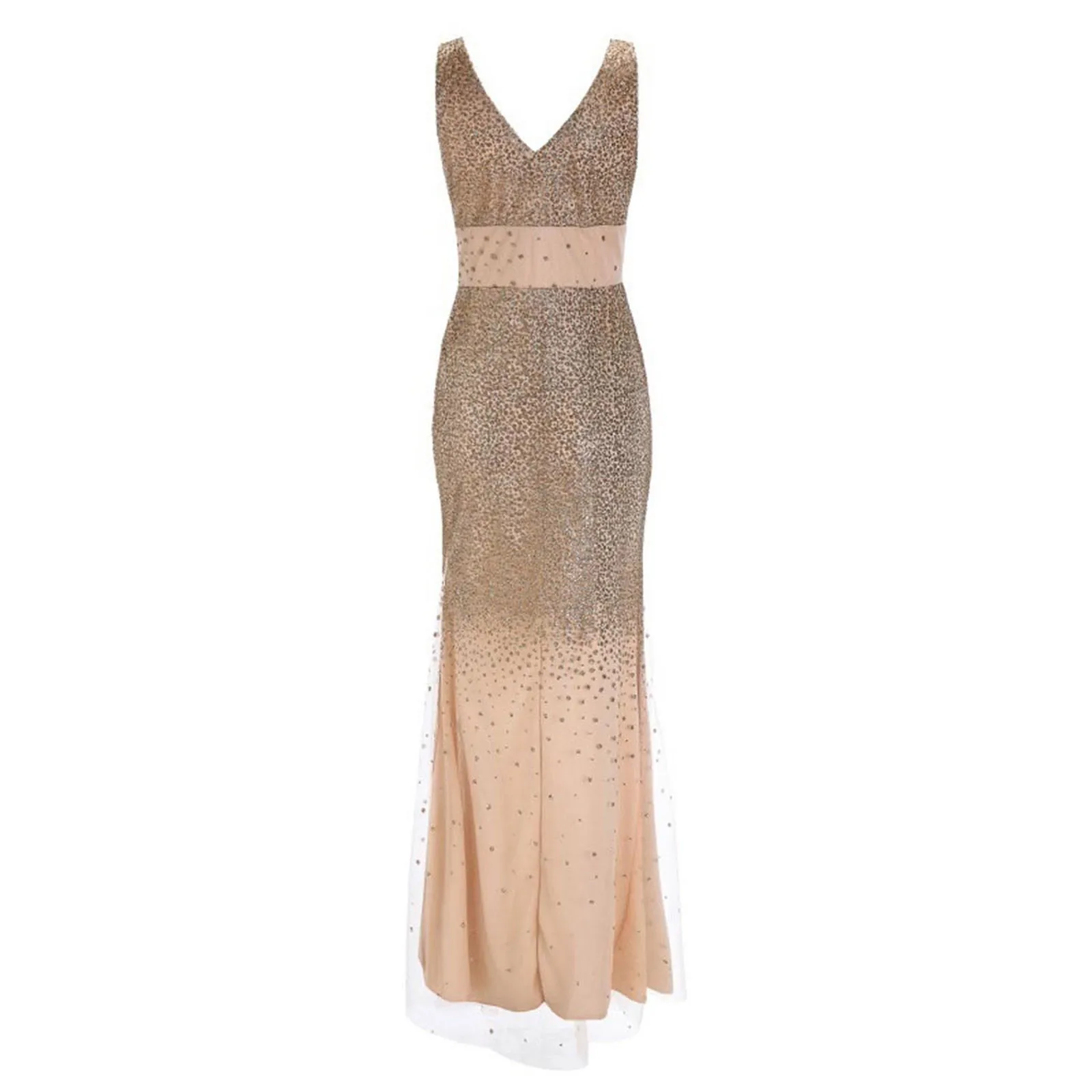 Женские вечерние бальные платья с блестками, сексуальное Золотое вечернее длинное платье подружки невесты с v-образным вырезом