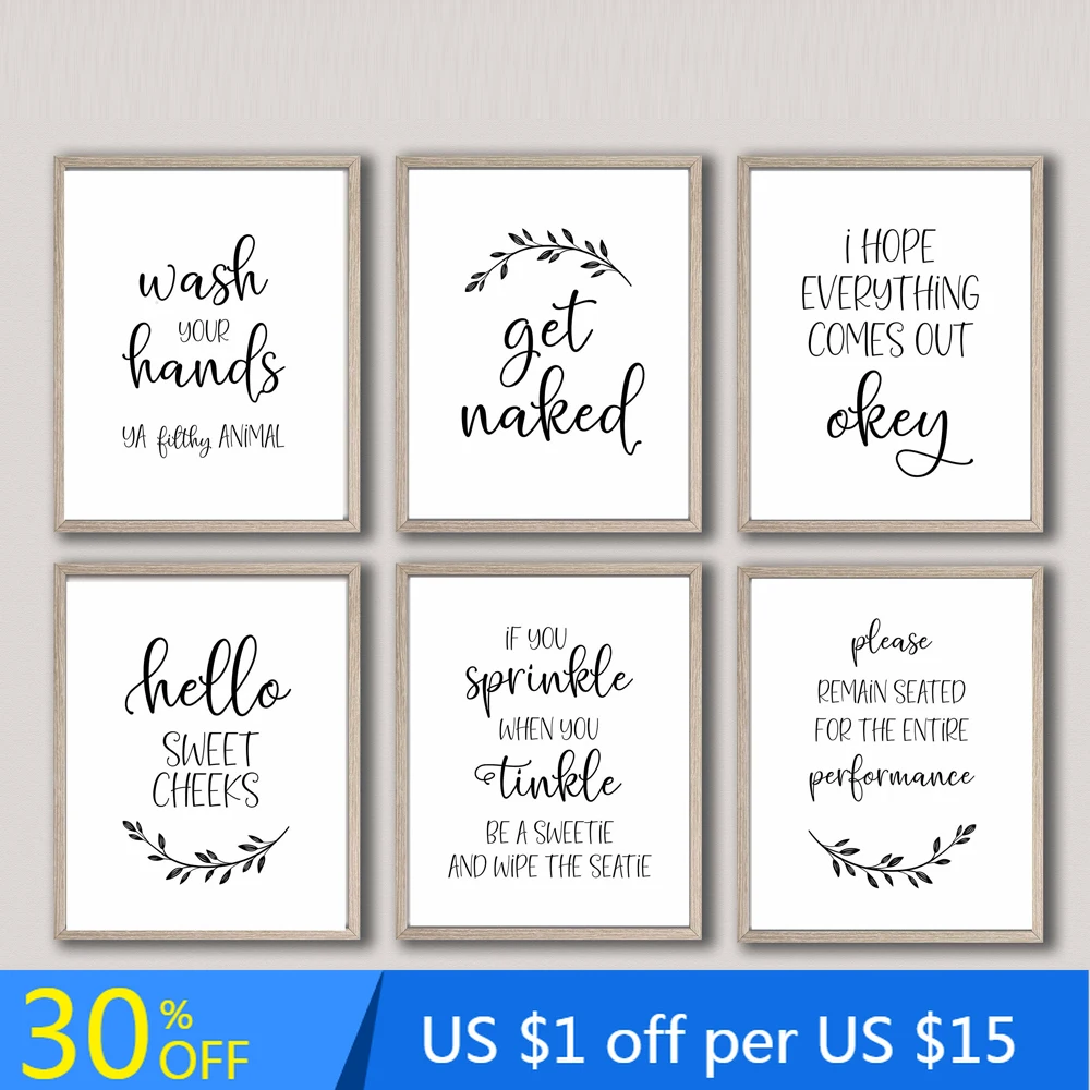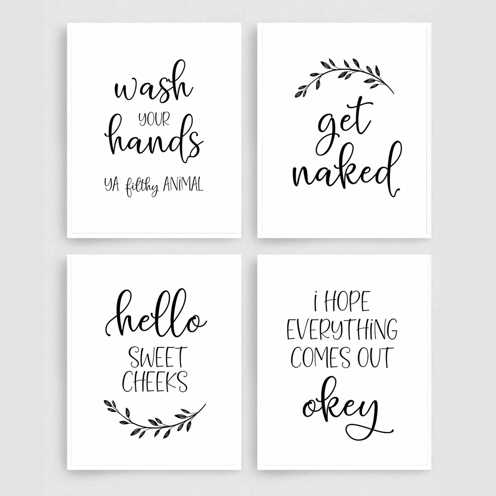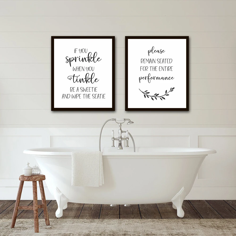 Черный, Белый Цвет Забавный Ванная комната знак Печать на холсте и плакаты Mdoern Стиль картина с цитатами мужские и женские настенные картины для ванной комнаты