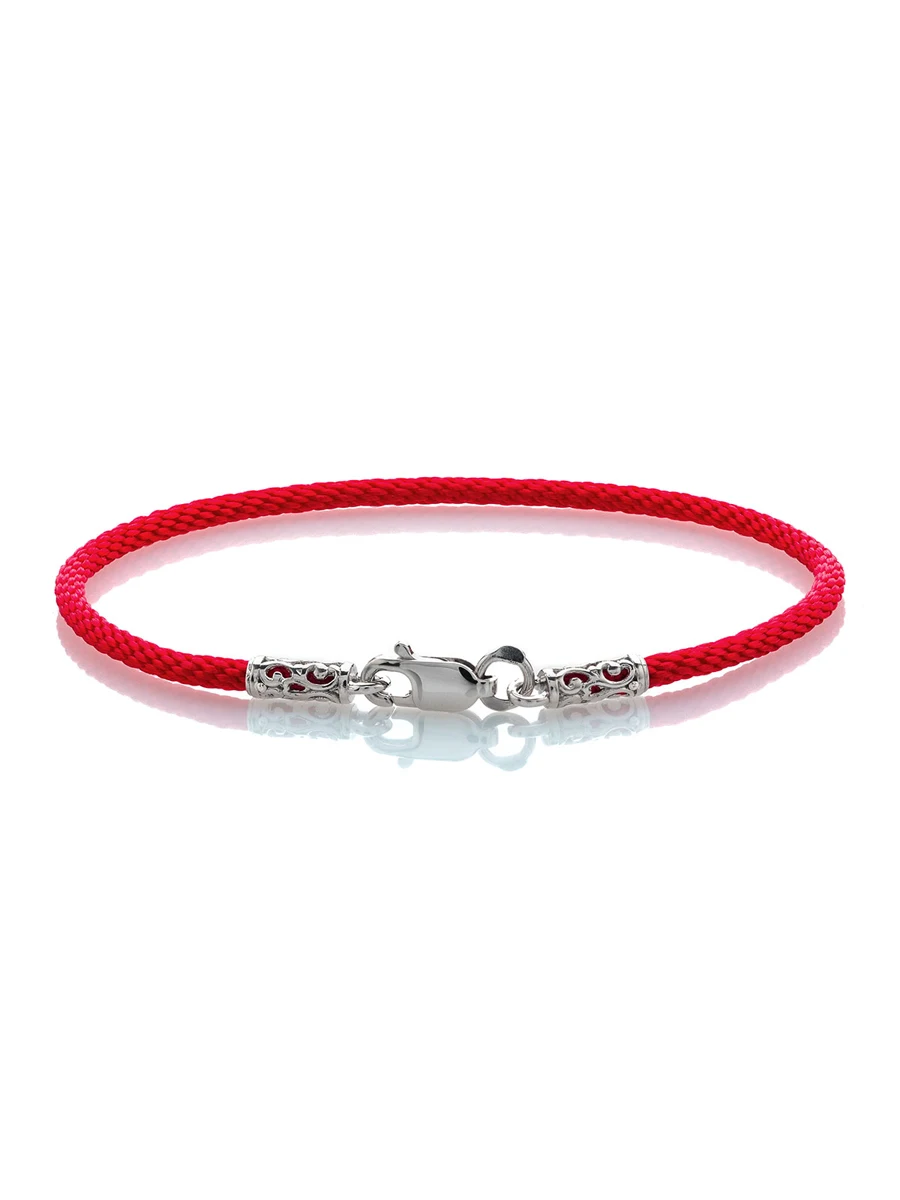 Красный Браслет с серебряными окончаниями и замком 925 пробы.