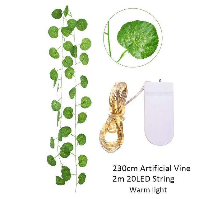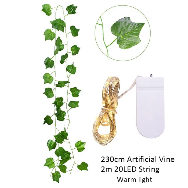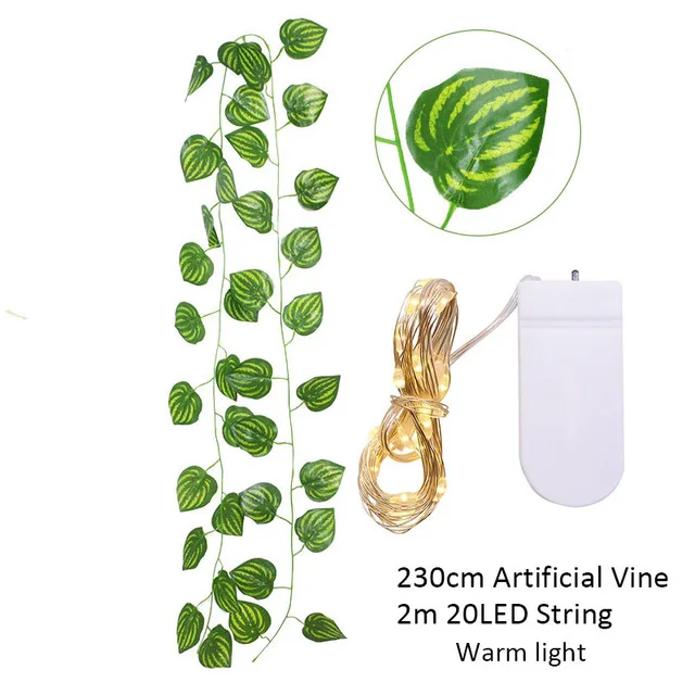 2,3 м шелковые листья, искусственные ползунки, зеленые листья, лоза плюща, 2 м, светодиодные гирлянды для дома, свадебной вечеринки, подвесная гирлянда, искусственный цветок