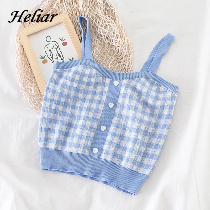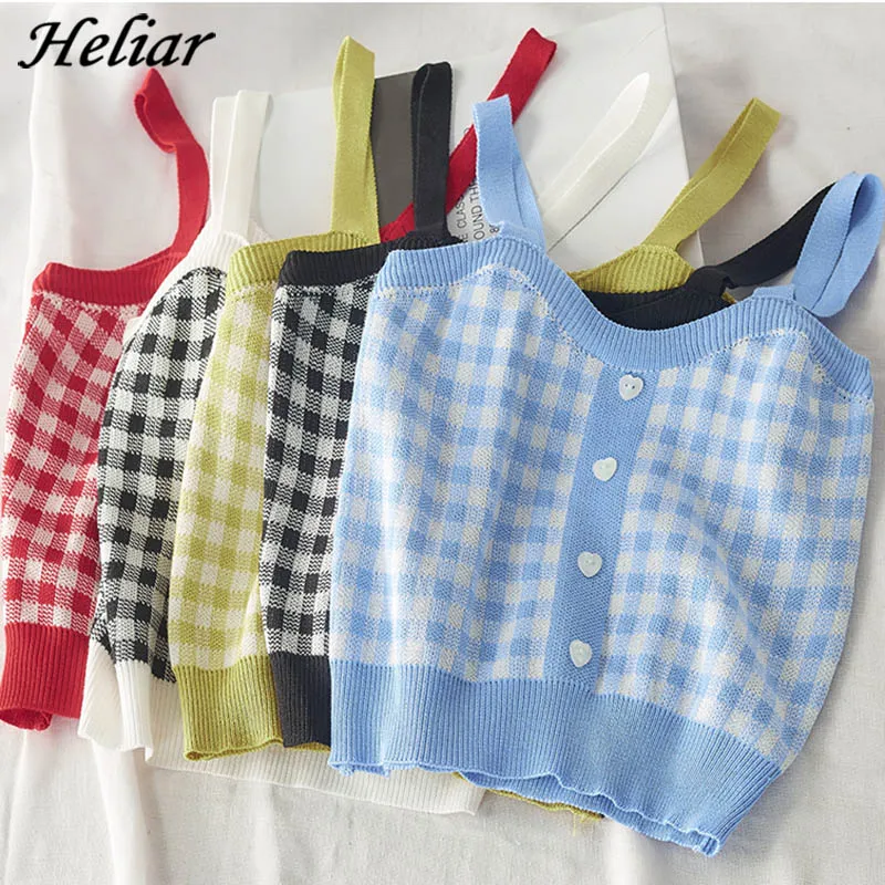 HELIAR Женские клетчатые Короткие топы без рукавов трикотажные укороченные топы Женская обувь с ремешком на пряжке, на шнуровке, ремни На Бретельках Симпатичные топы для женщин 2021 лето