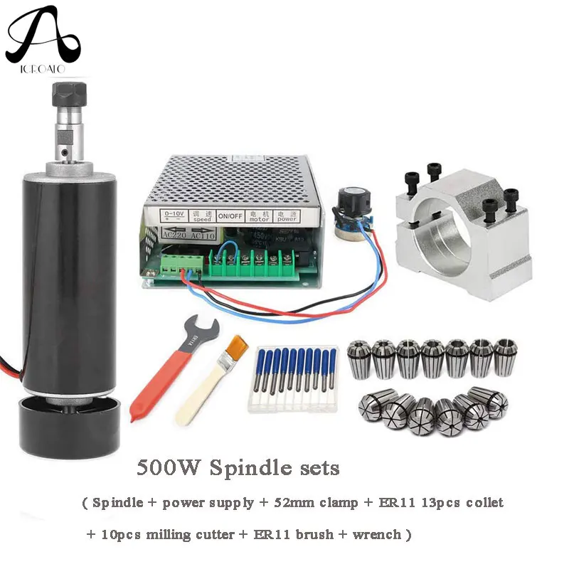 Комплекты шпинделей с ЧПУ 500 Вт электродвигатель шпинделя с воздушным охлаждением 220 В110 источник питания шпиндель с ER11 зажимами 13 шт. для гравировки